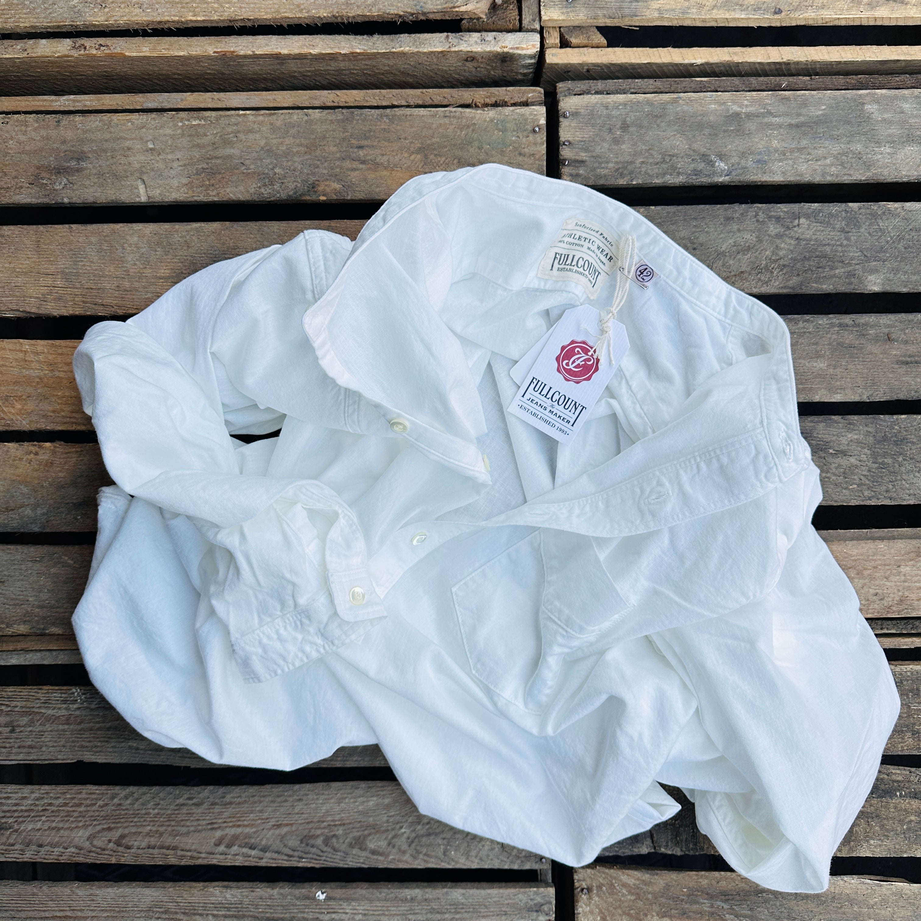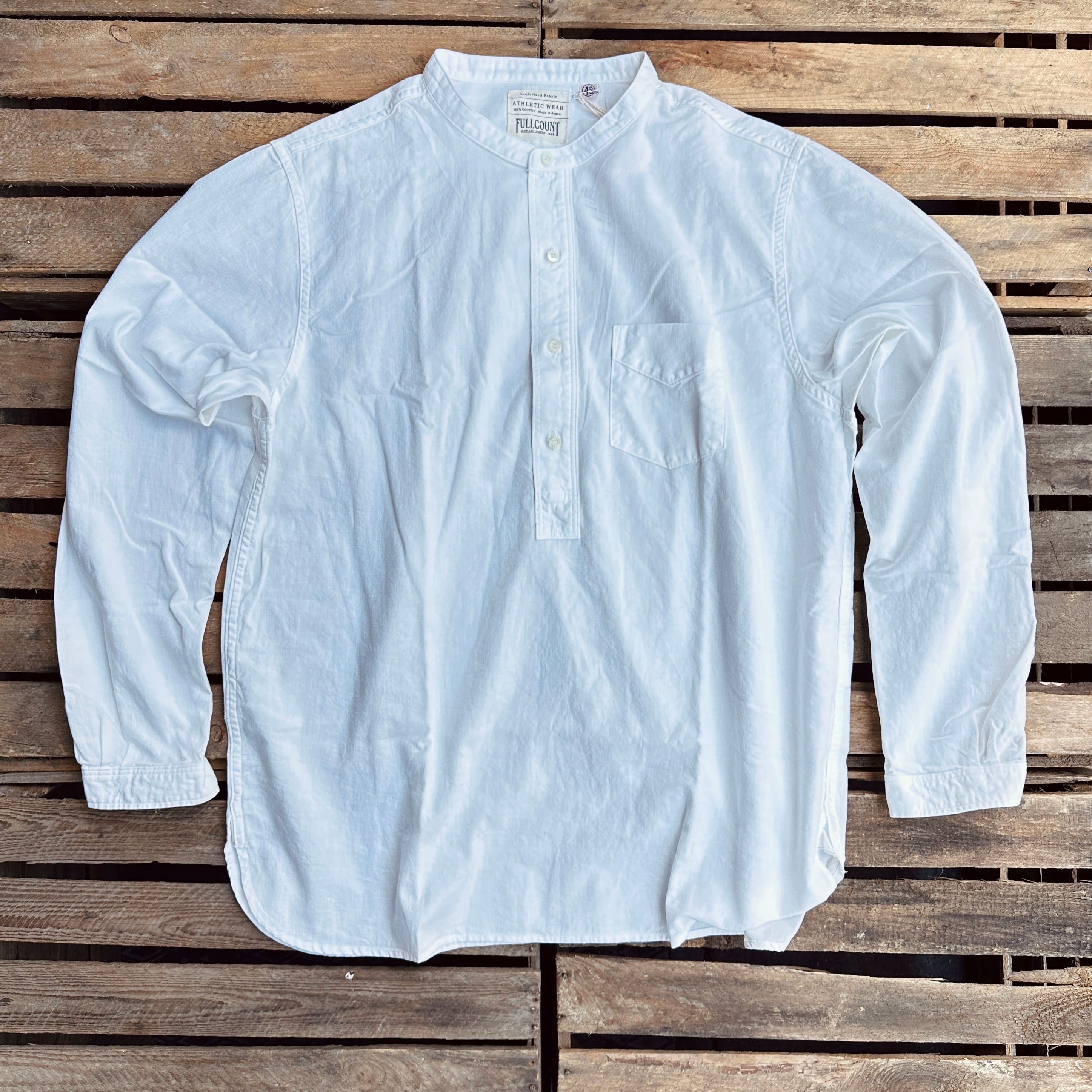 Fullocunt | 4900-21 | Stand Collar Chambray Shirt | White