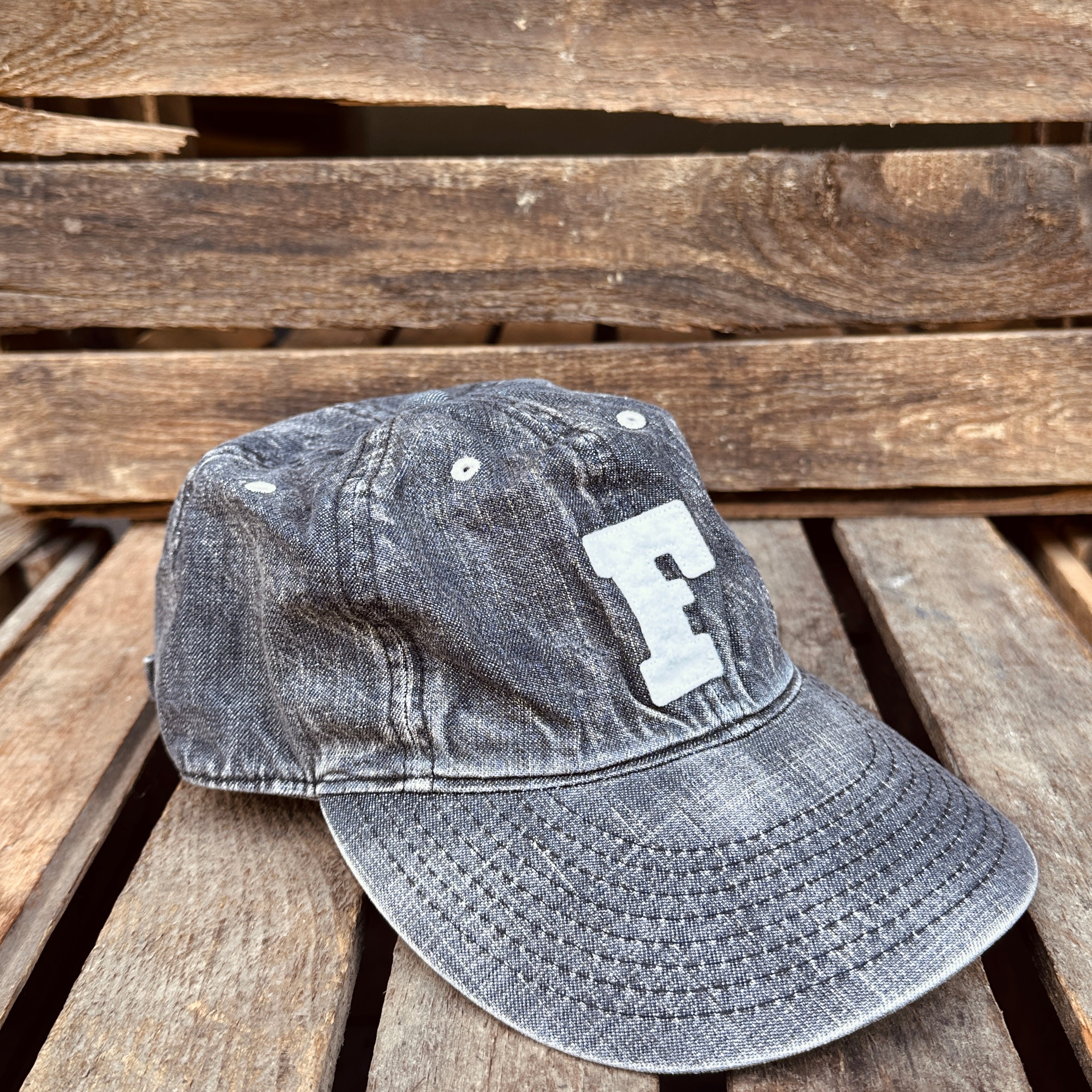 Fullcount | 6843HW | 6Panel Denim Baseball Cap 'F' Patch | Vintage Wash | Black