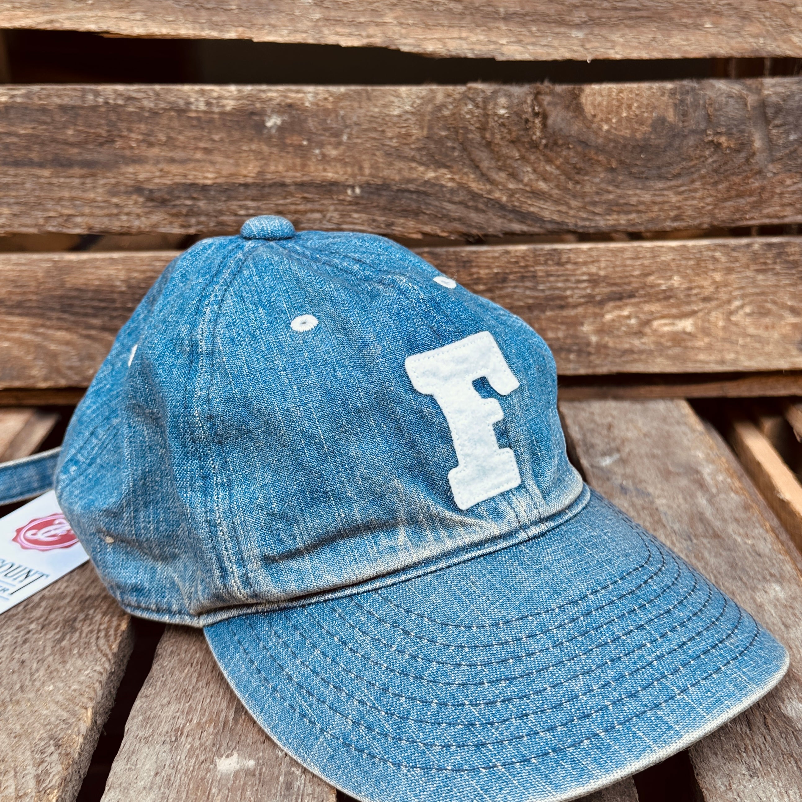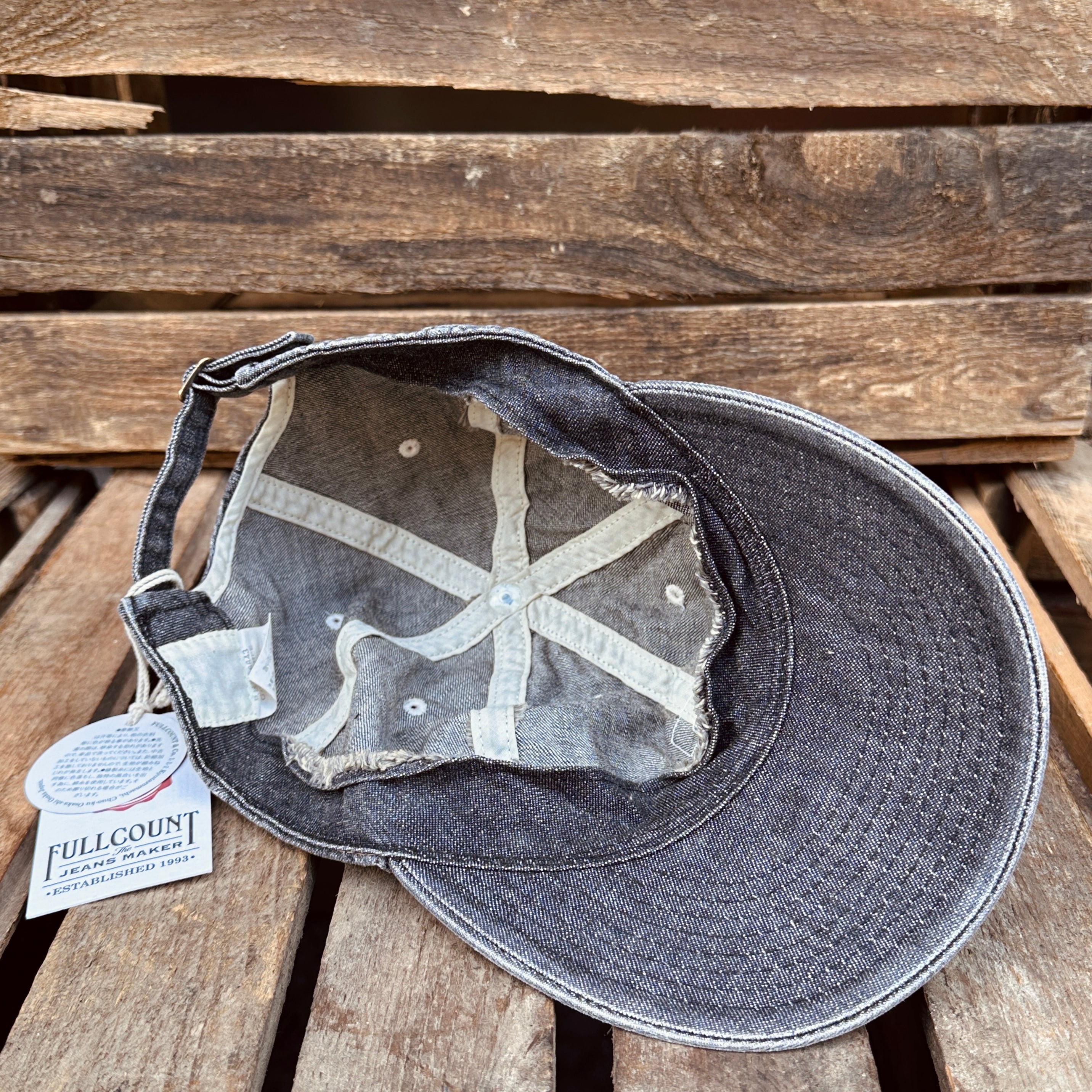 Fullcount | 6843HW | 6Panel Denim Baseball Cap 'F' Patch | Vintage Wash | Indigo Blue