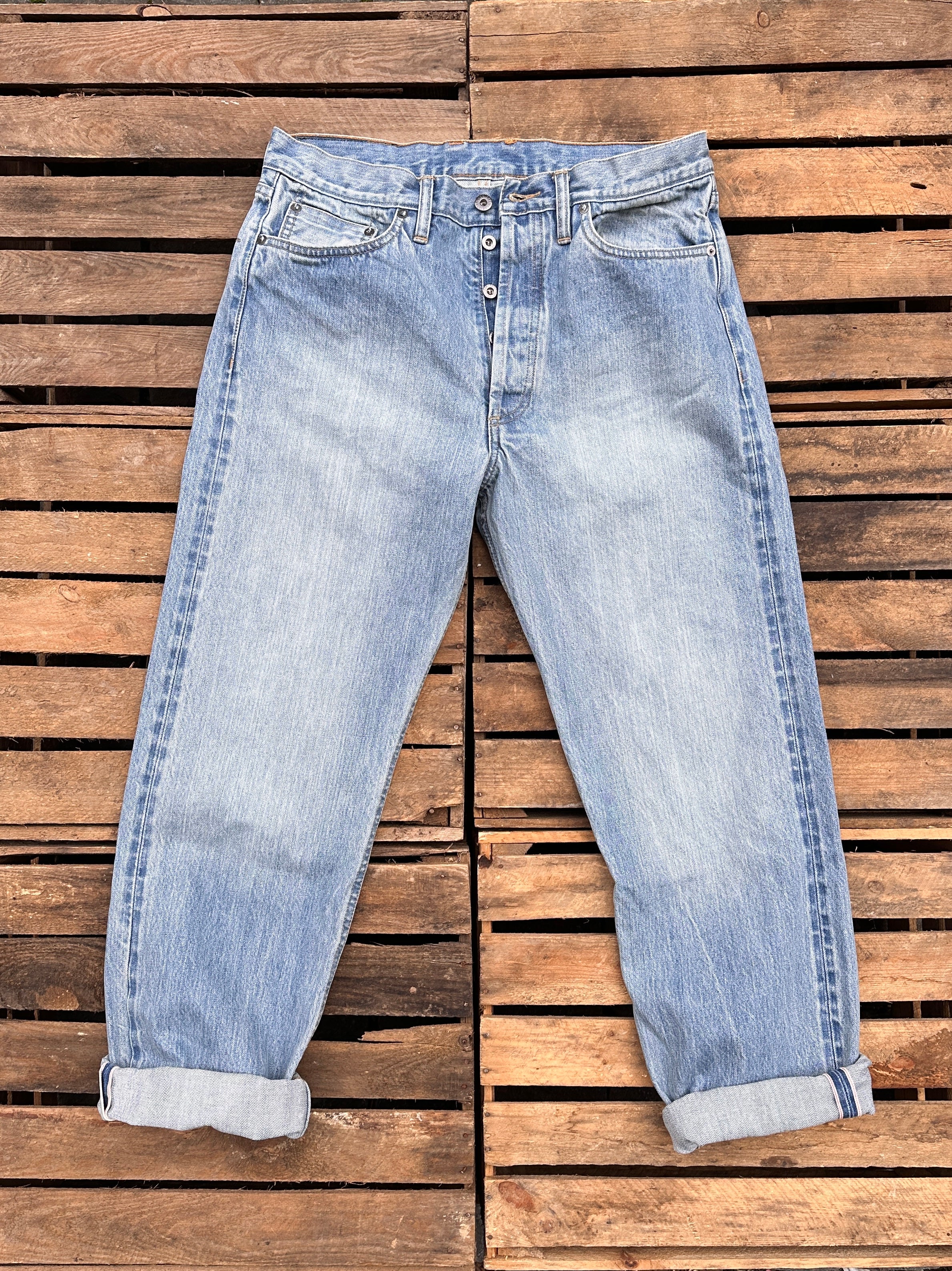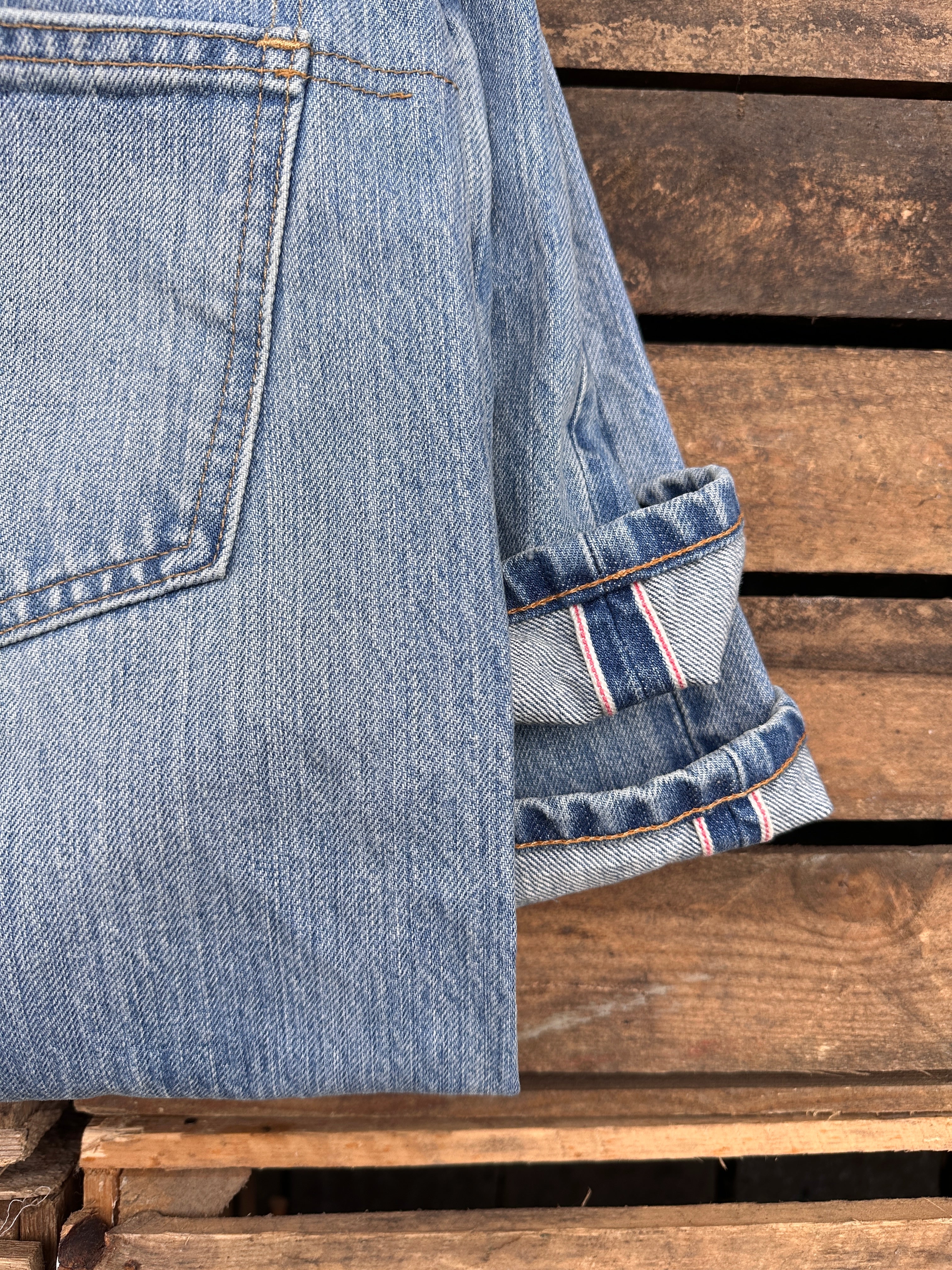 - 14.5oz stonewashed indigo selvedge woven in Okayama, Japan