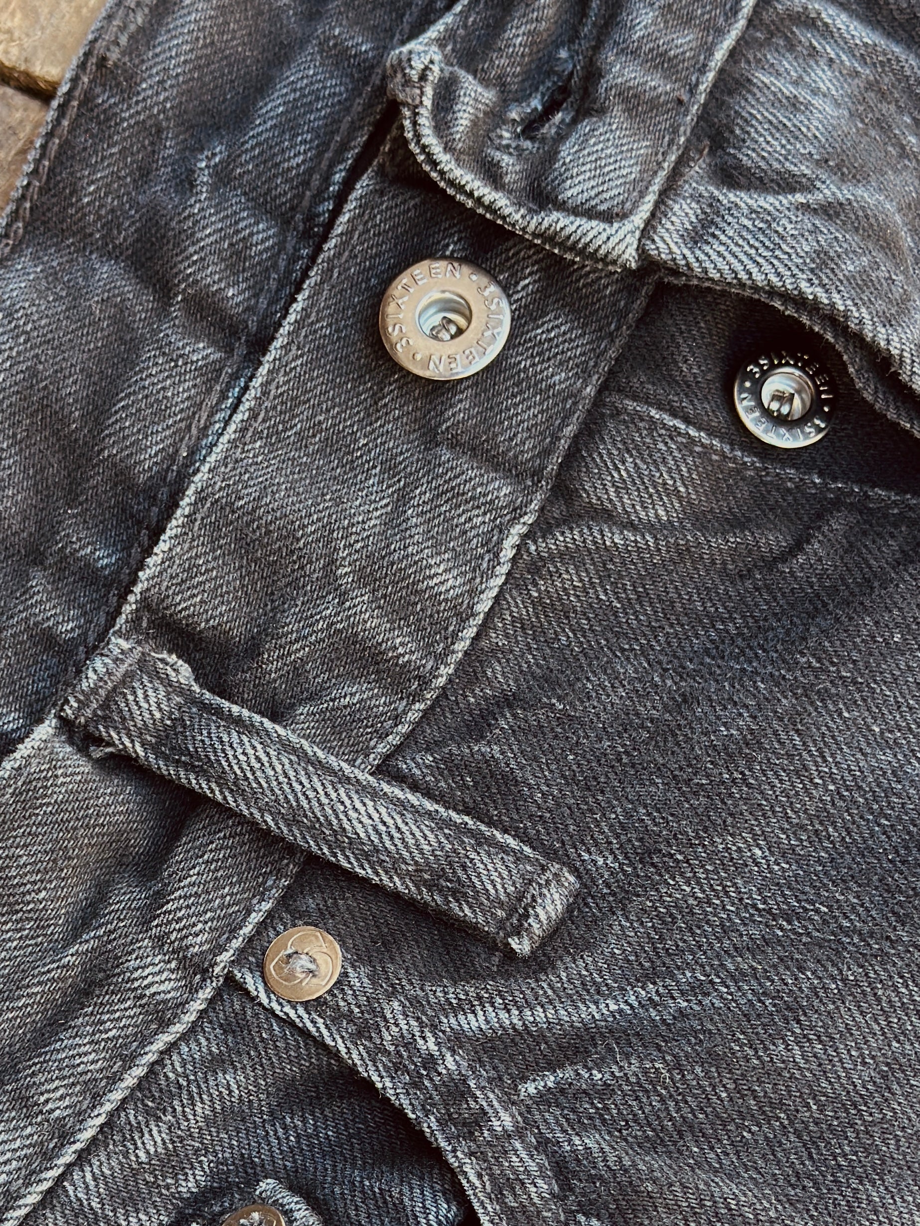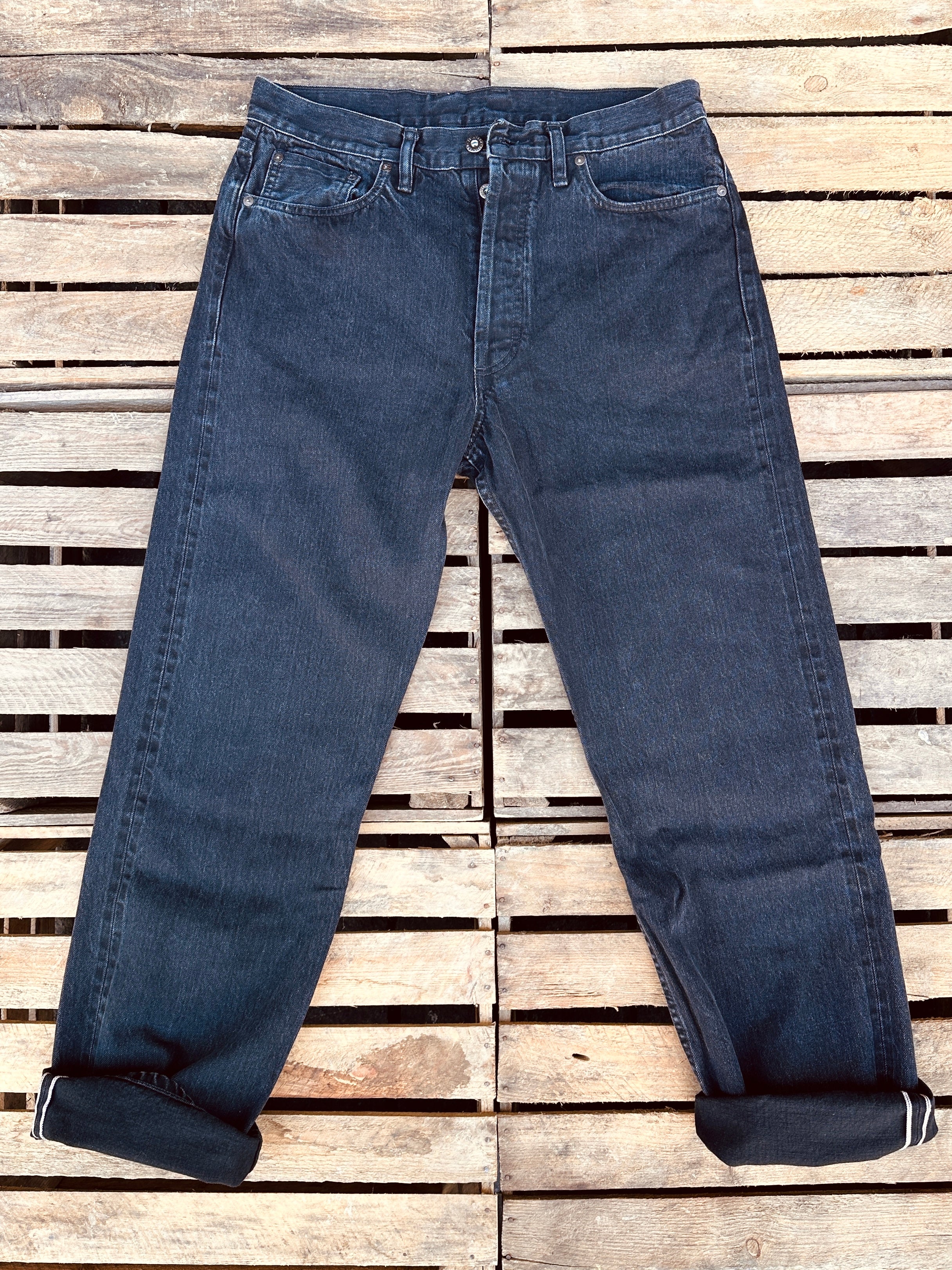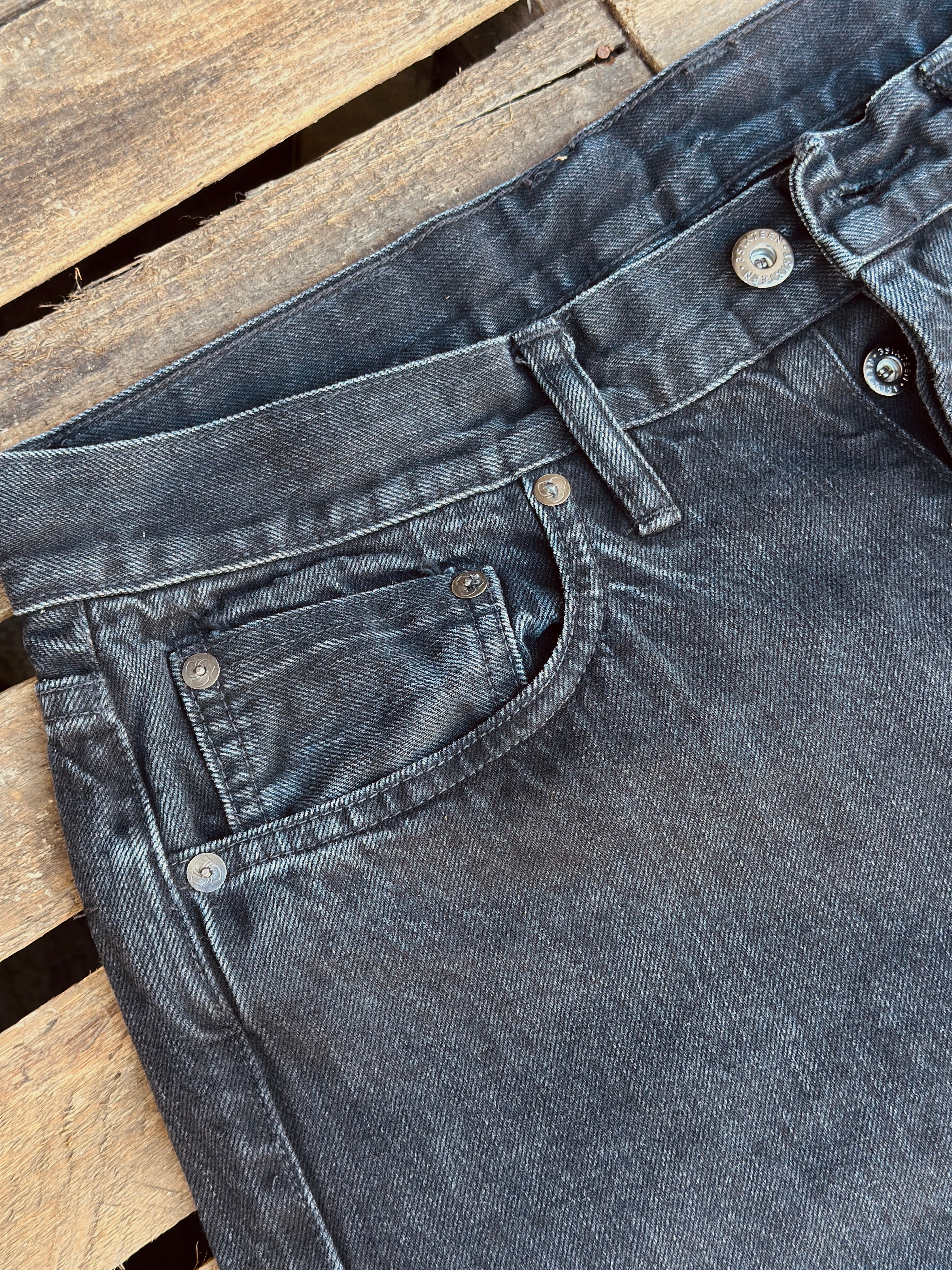 - 12oz black warp/black weft selvedge woven in Okayama, Japan
