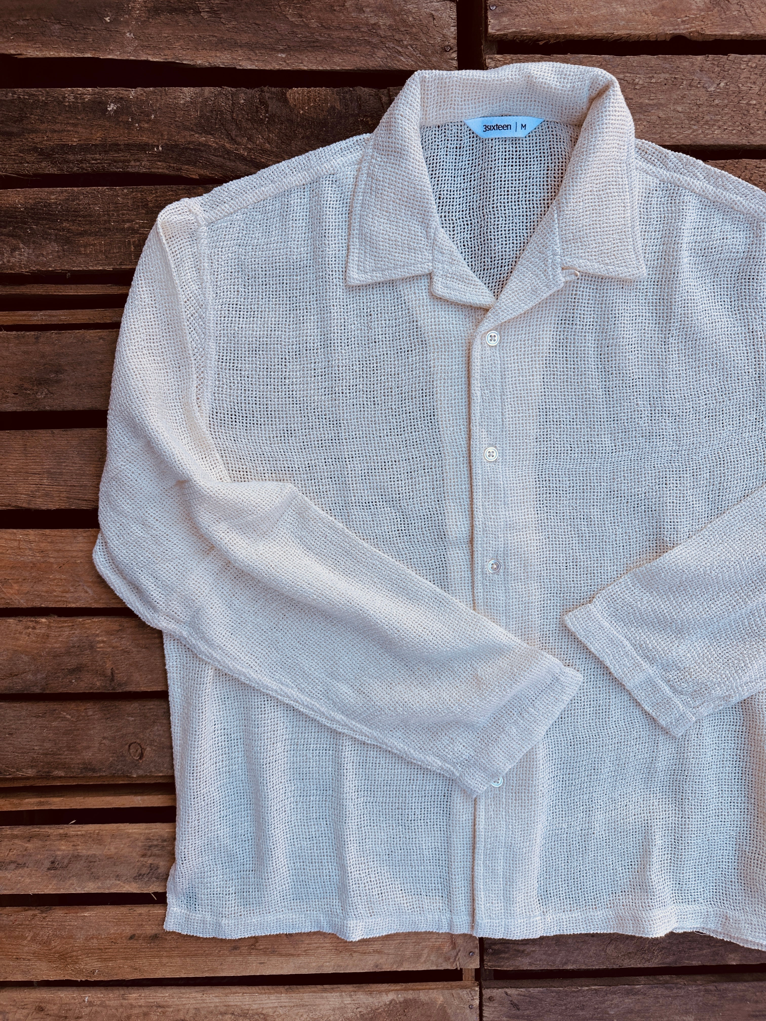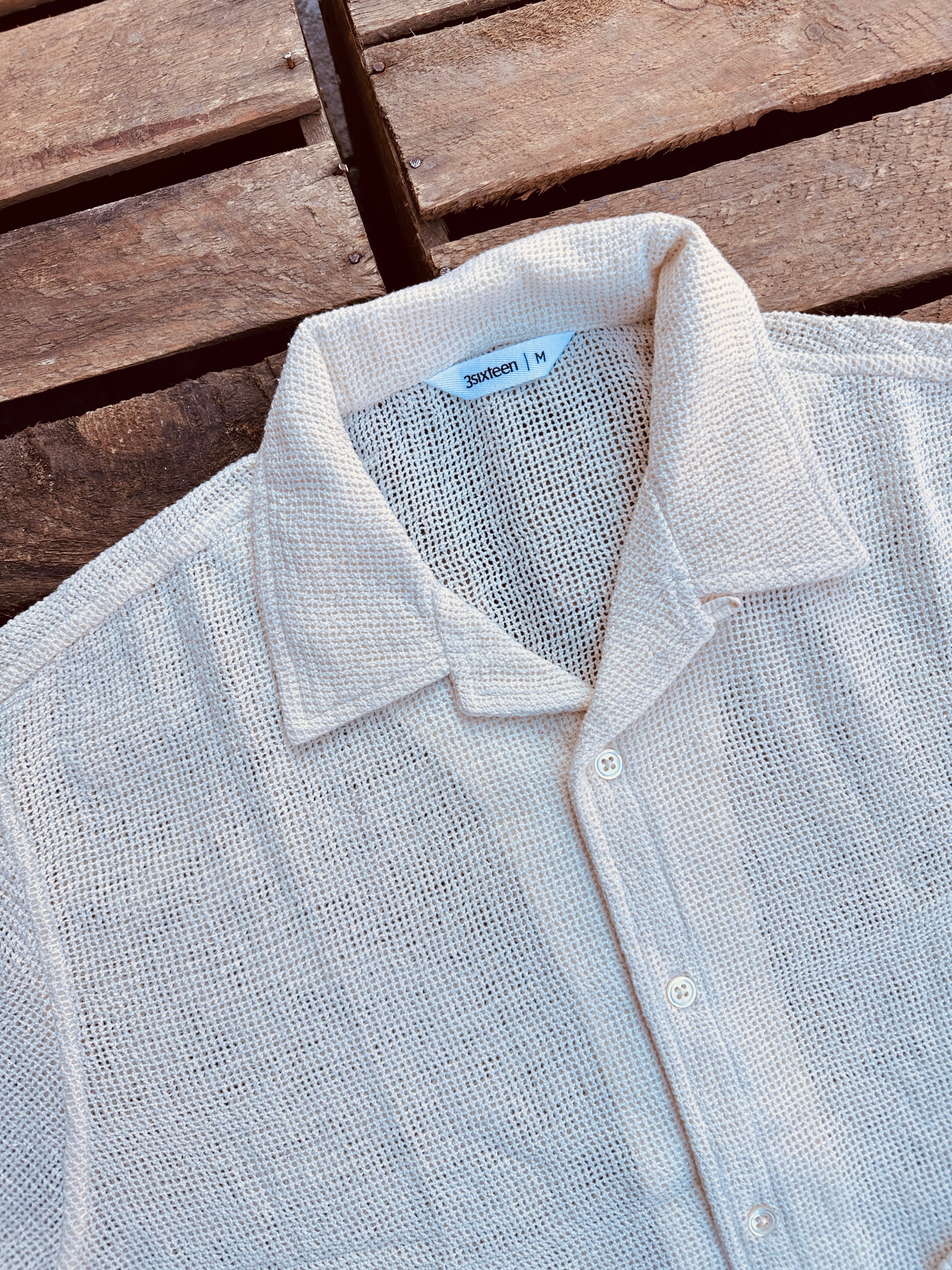 3sixteen | Loop Collar Shirt | Ecru Mesh