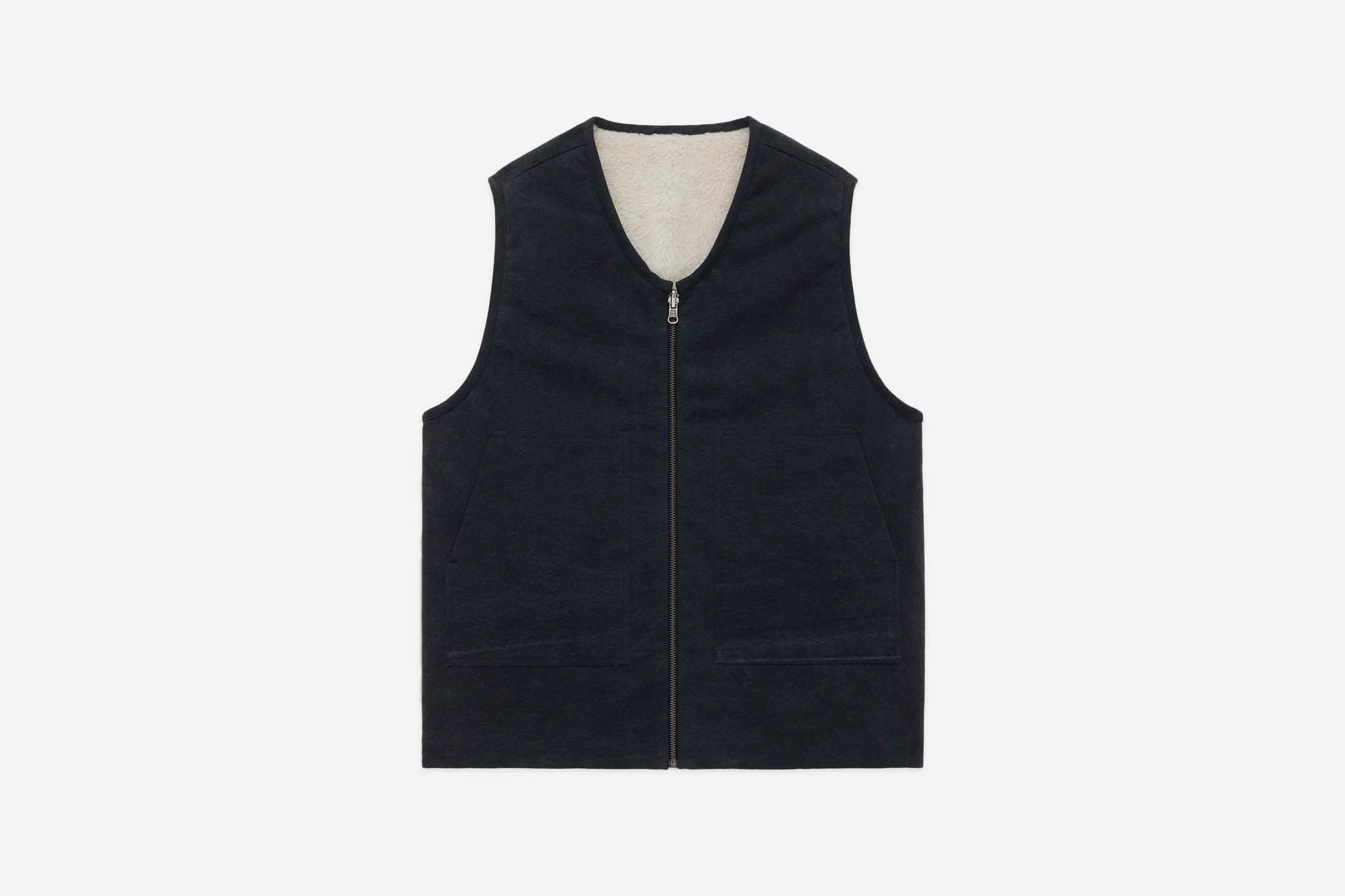 3sixteen | Reversible Work Vest | Black Canvas Ecru Wool Sherpa