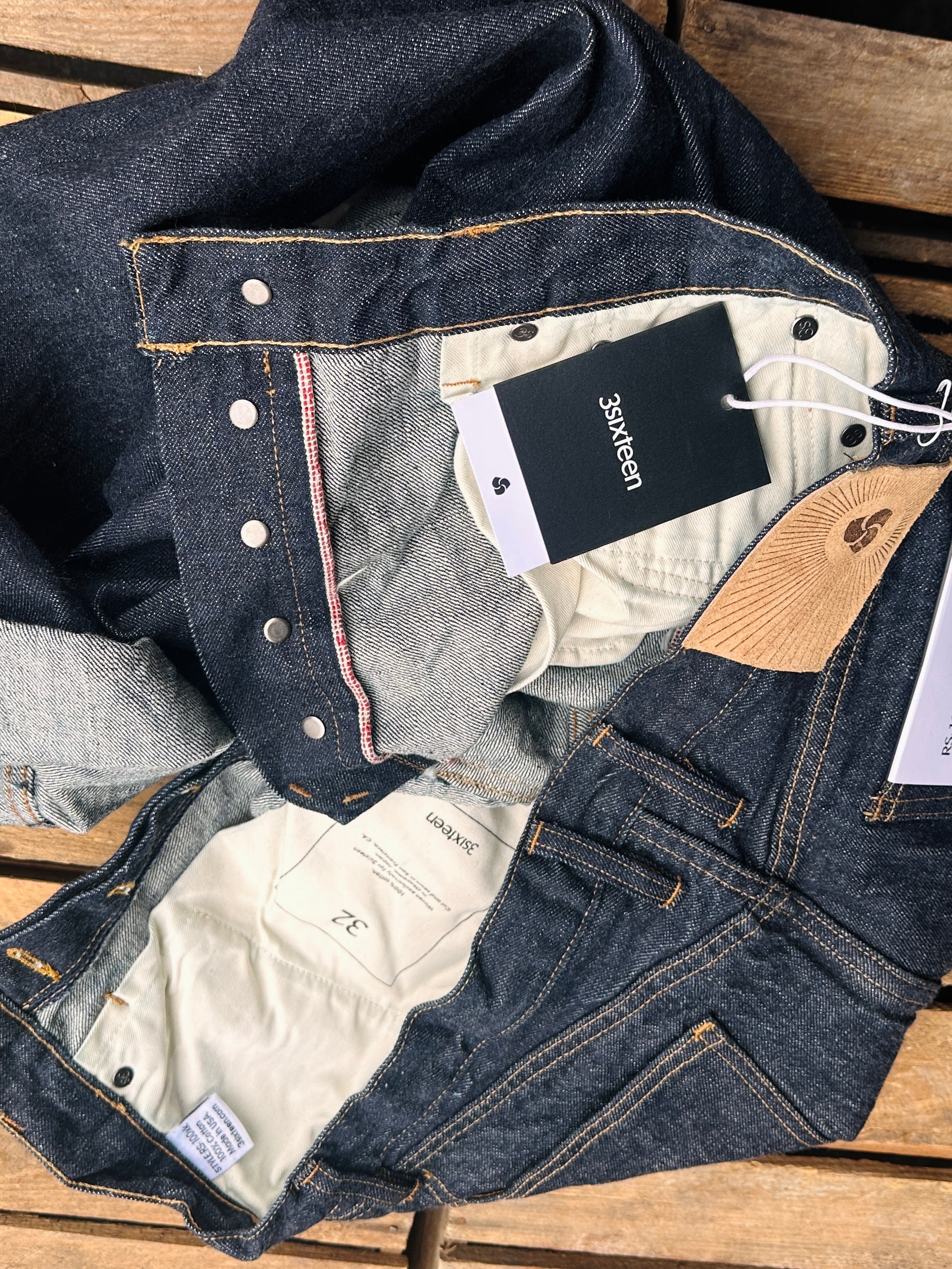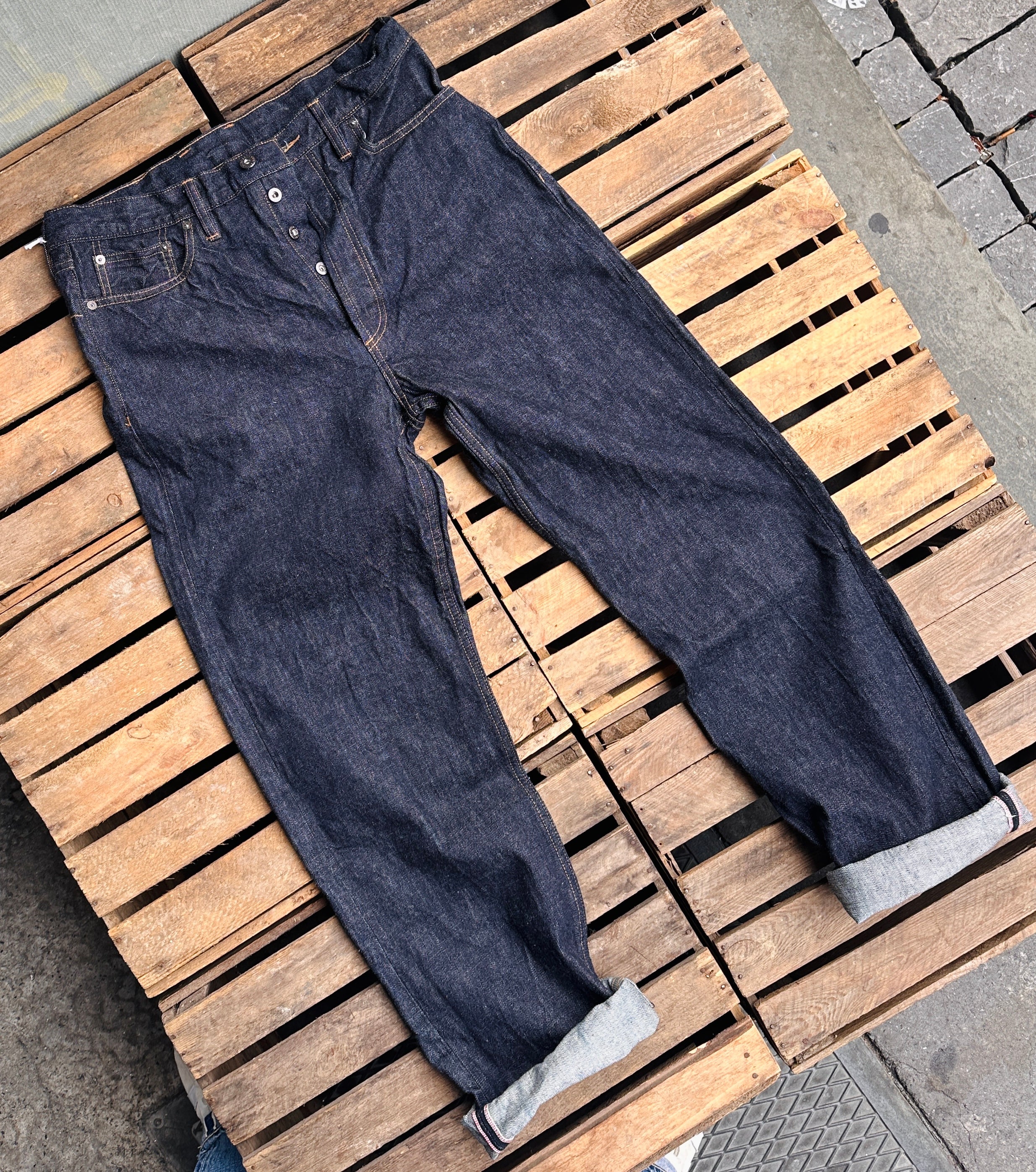 - Low tension unsanforized denim (rinsed - no shrinkage)