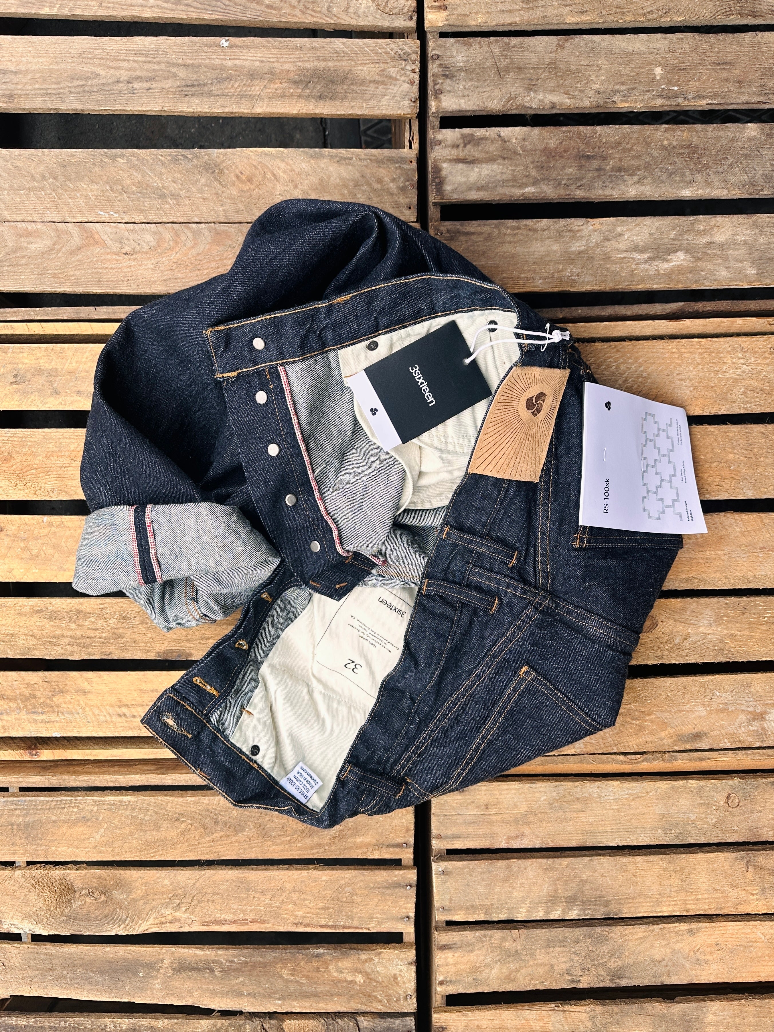 The RS-100xk jean features a beautiful loomstate raw indigo selvedge denim which is custom woven exclusively for 3sixteen by Kuroki Mills. This denim has been woven at low tension to give it a rough, abrasive hand that will yield beautiful fading results over time. 3sixteen then gives the jean a rinse to eliminate shrinkage and bring out the texture and character of the fabric even further. Their RS cut is their widest fit, developed with more room in the thigh, a higher rise, and a wider leg opening than their other offerings. The cut is generous and comfortable, perfect with a break or a clean cuff.