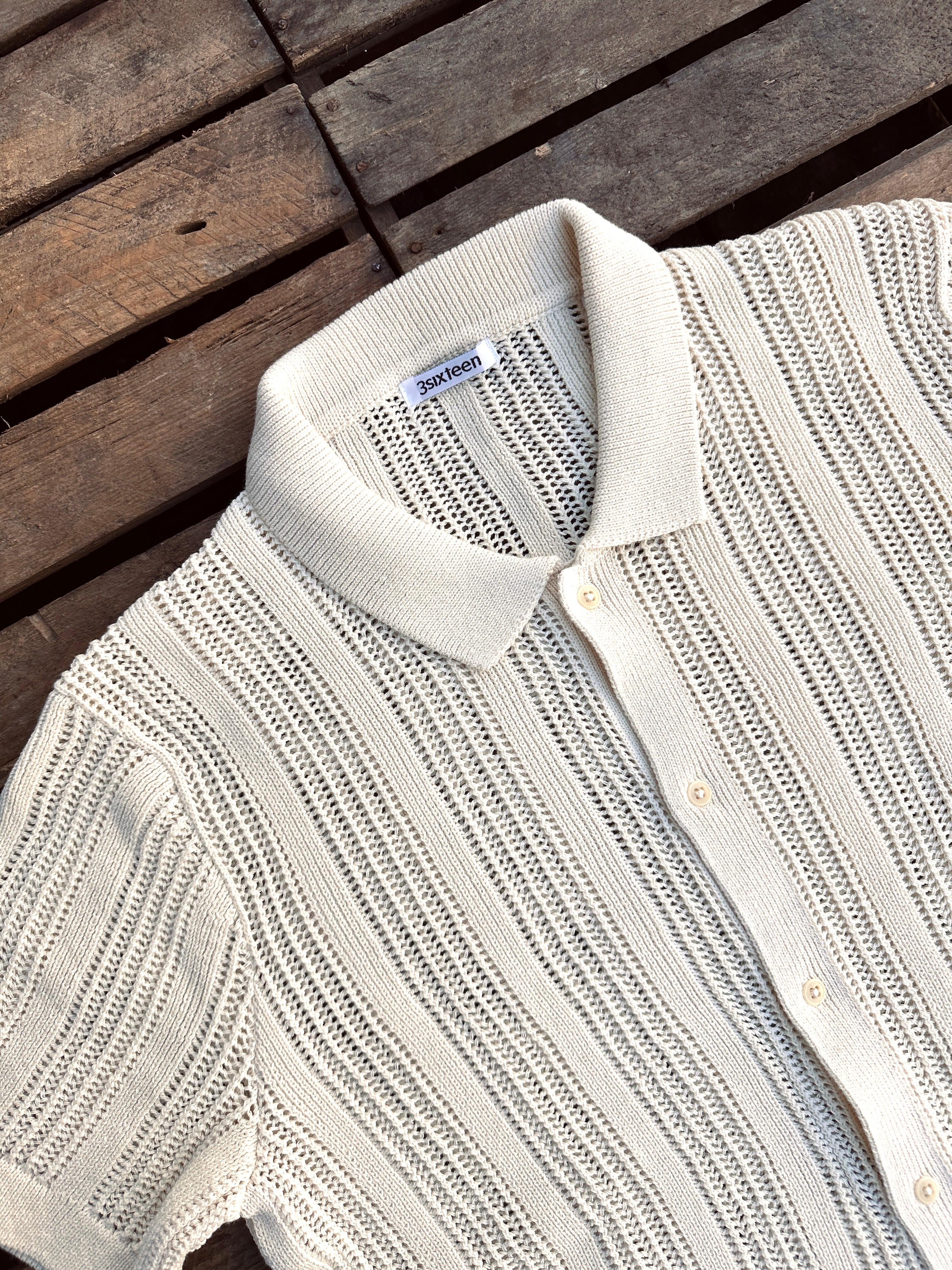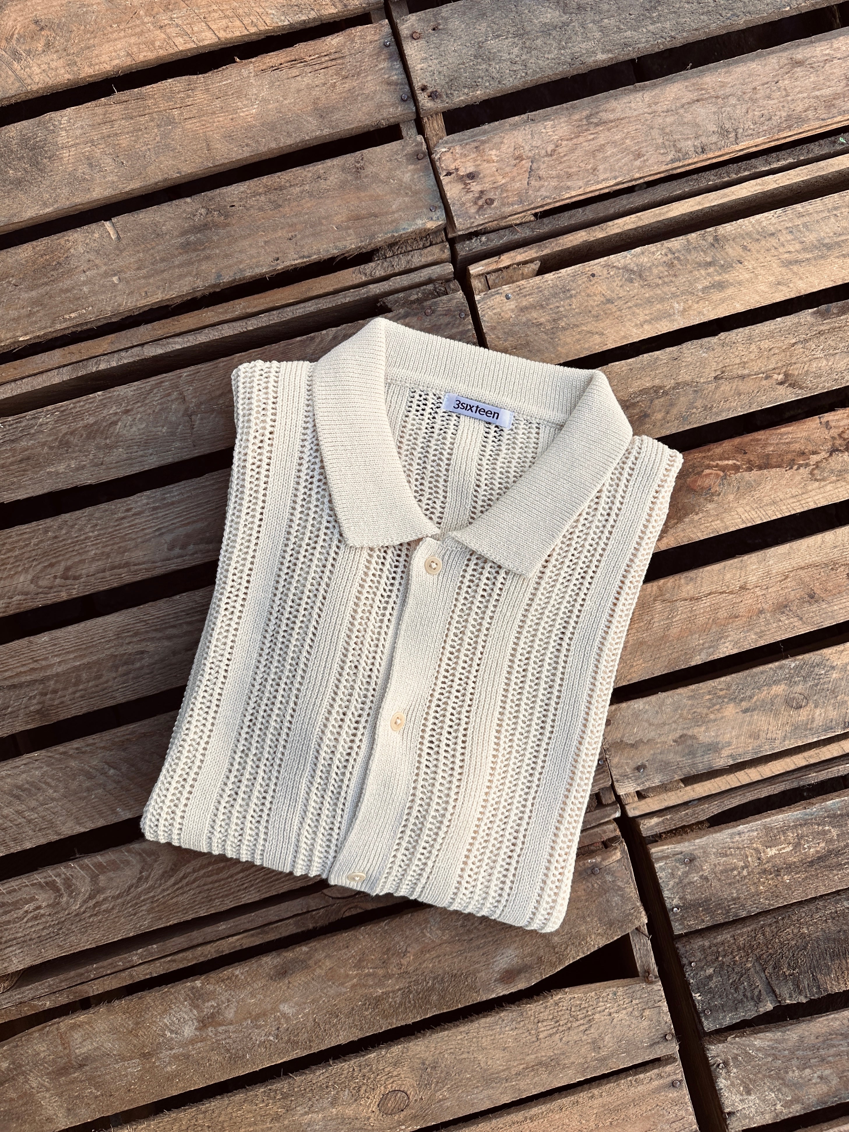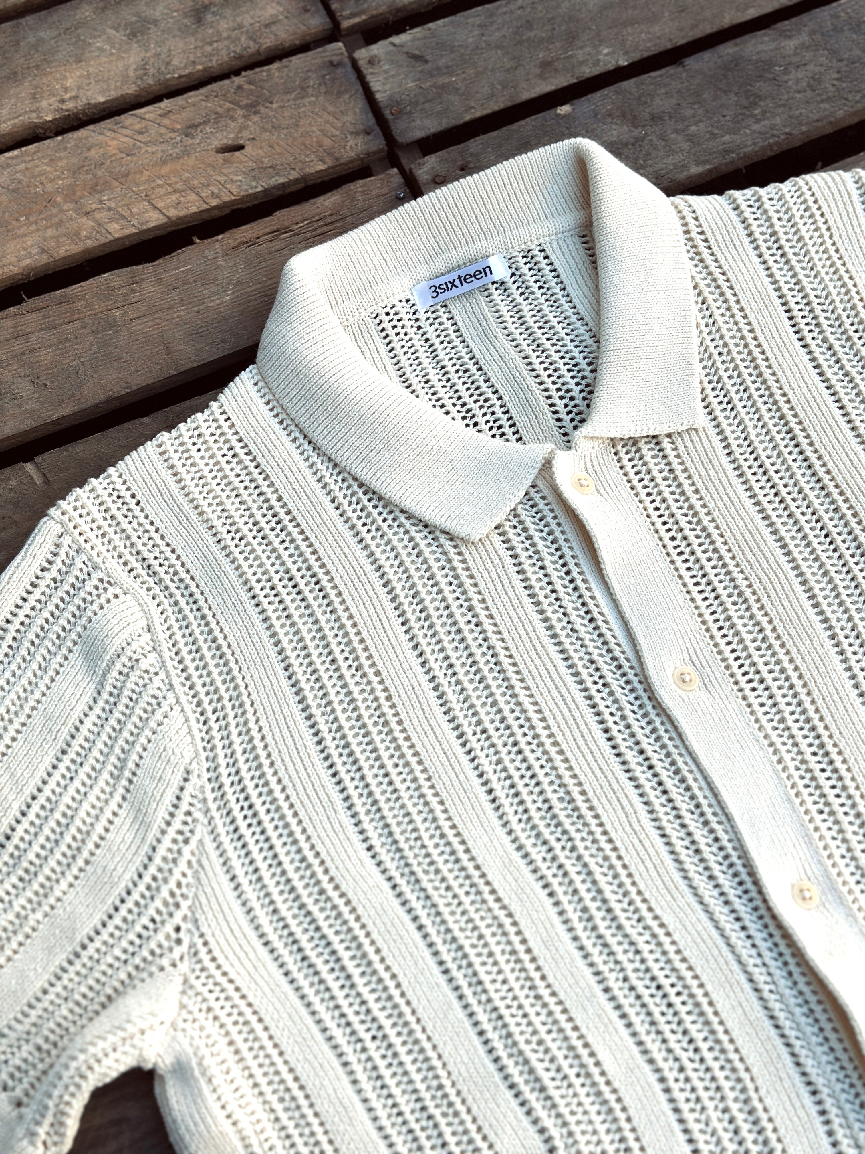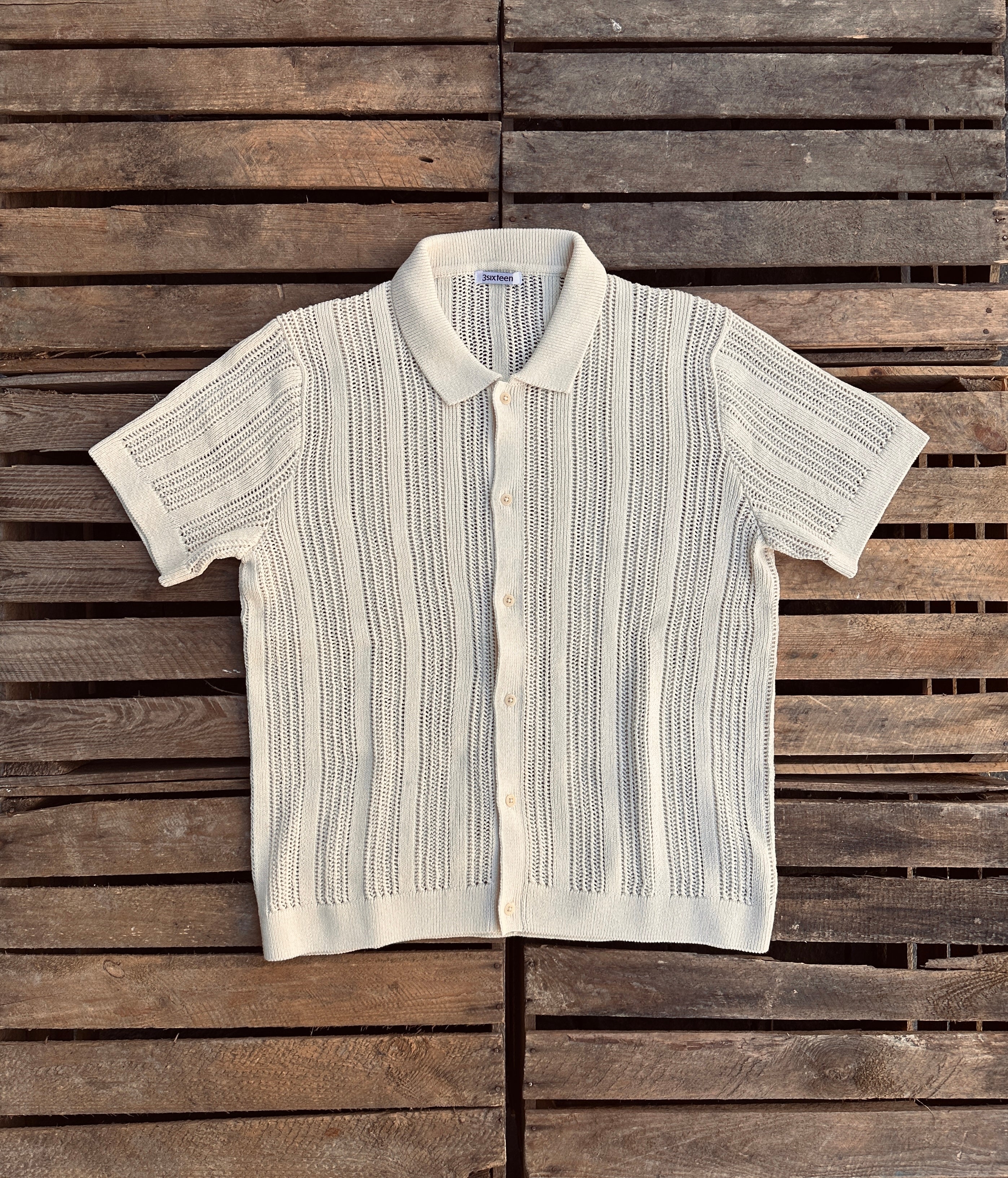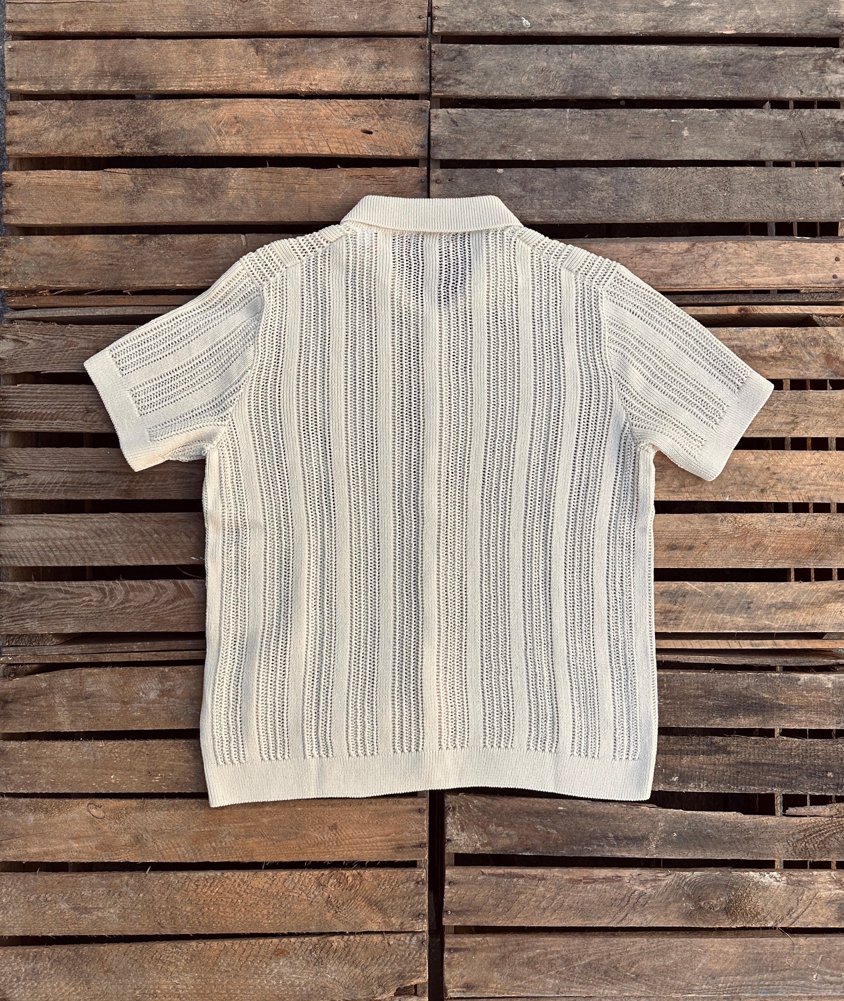 3sixteen | Short Sleeve Knit Shirt | Ecru Mesh Stripe