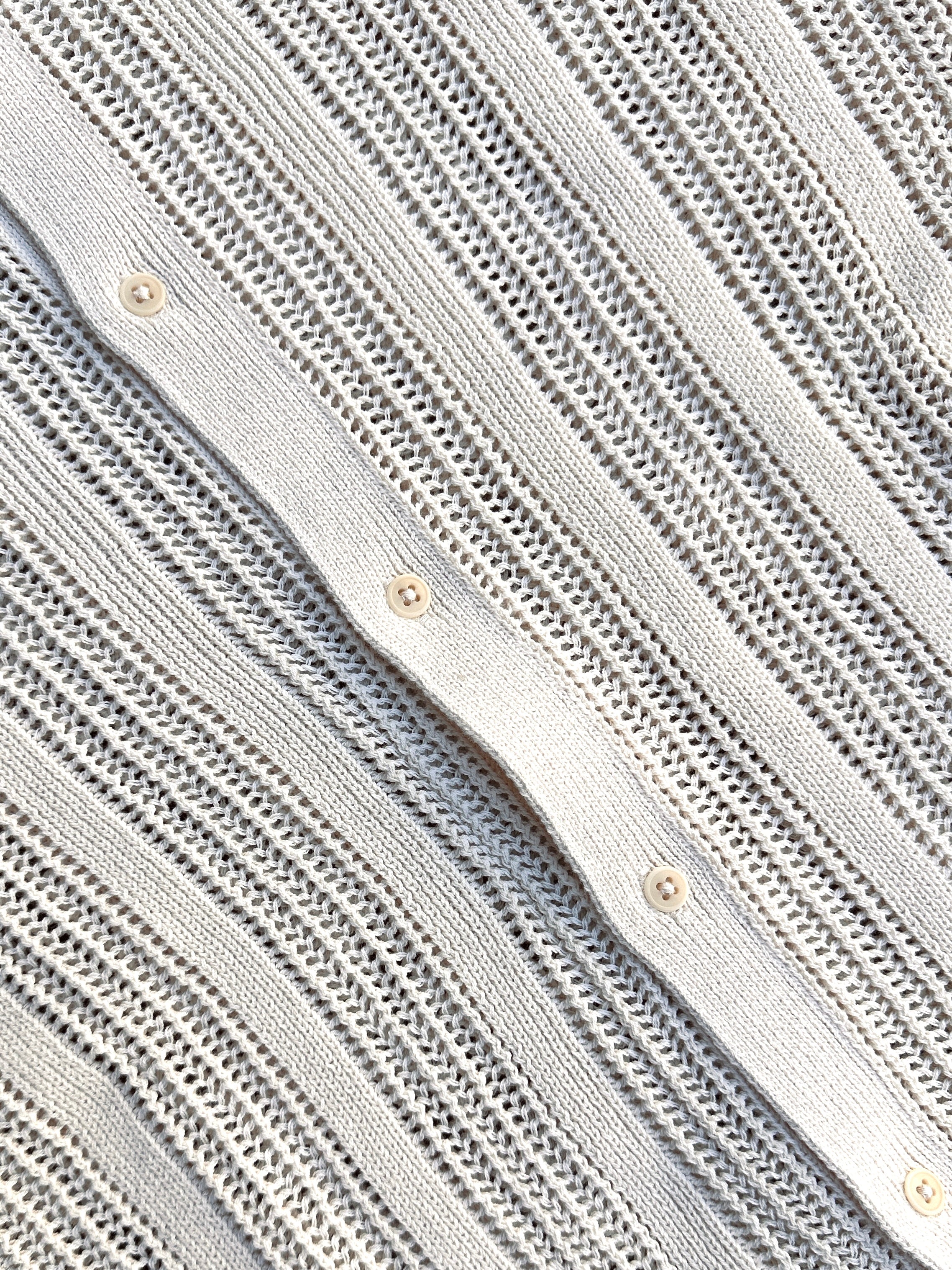 The short Sleeve Knit Shirt is a new addition to the 3sixteen knitwear line up.With a button front placket, collar, and open cuffs, it functions as a shirt but is knit in a soft and comfortable pima cotton with an open mesh stripe stitch.