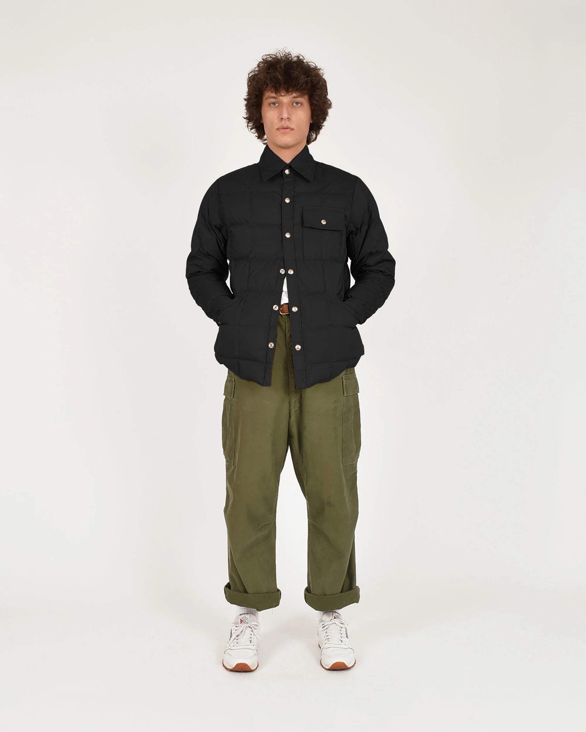 The Down Shirt is a lighter garment coming in at approximately 5.5 ounces of 700 fill down. The lighter loft makes it a great middle layering piece for colder climates, while still being more than adequate as an outer layer for mild climates.
