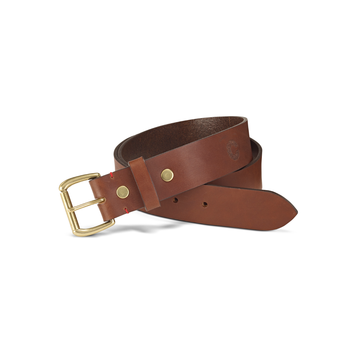 A classic men’s trouser belt with a solid roller buckle, available in polished brass or silver nickel finish. Made in 4mm thick leather and 1½” wide. Large range of waist sizes and with five holes for adjustment.