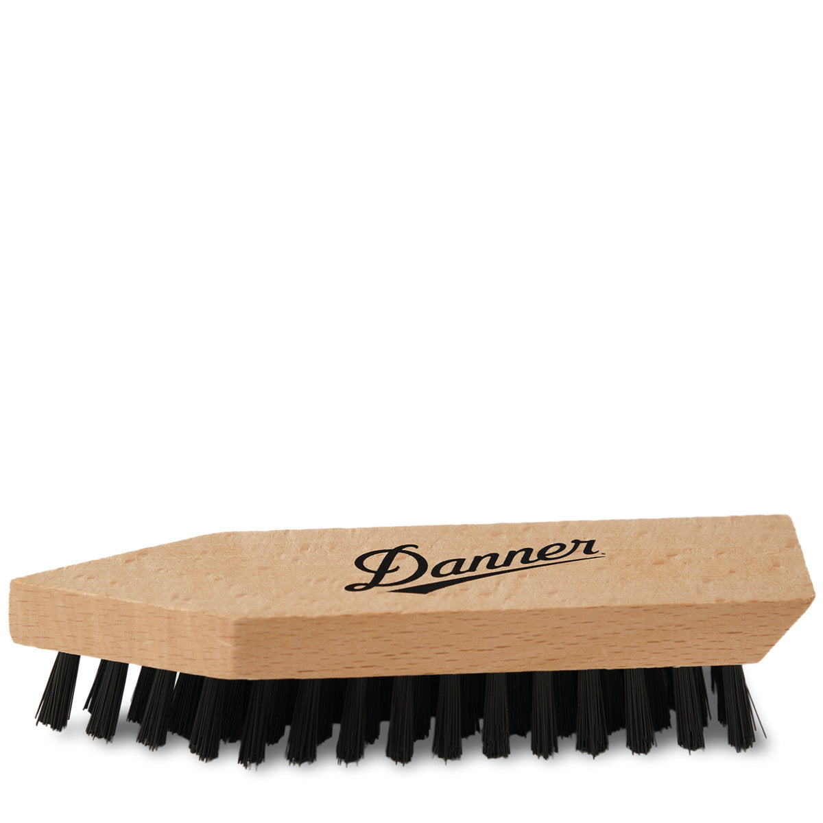 Cleaning BrushThis wood handled cleaning brush consists of strong nylon bristles capable of removing dirt and debris, a pointed leading edge for removing items from your outsole and welt, and a beveled leading edge to scraping off mud and dirt.