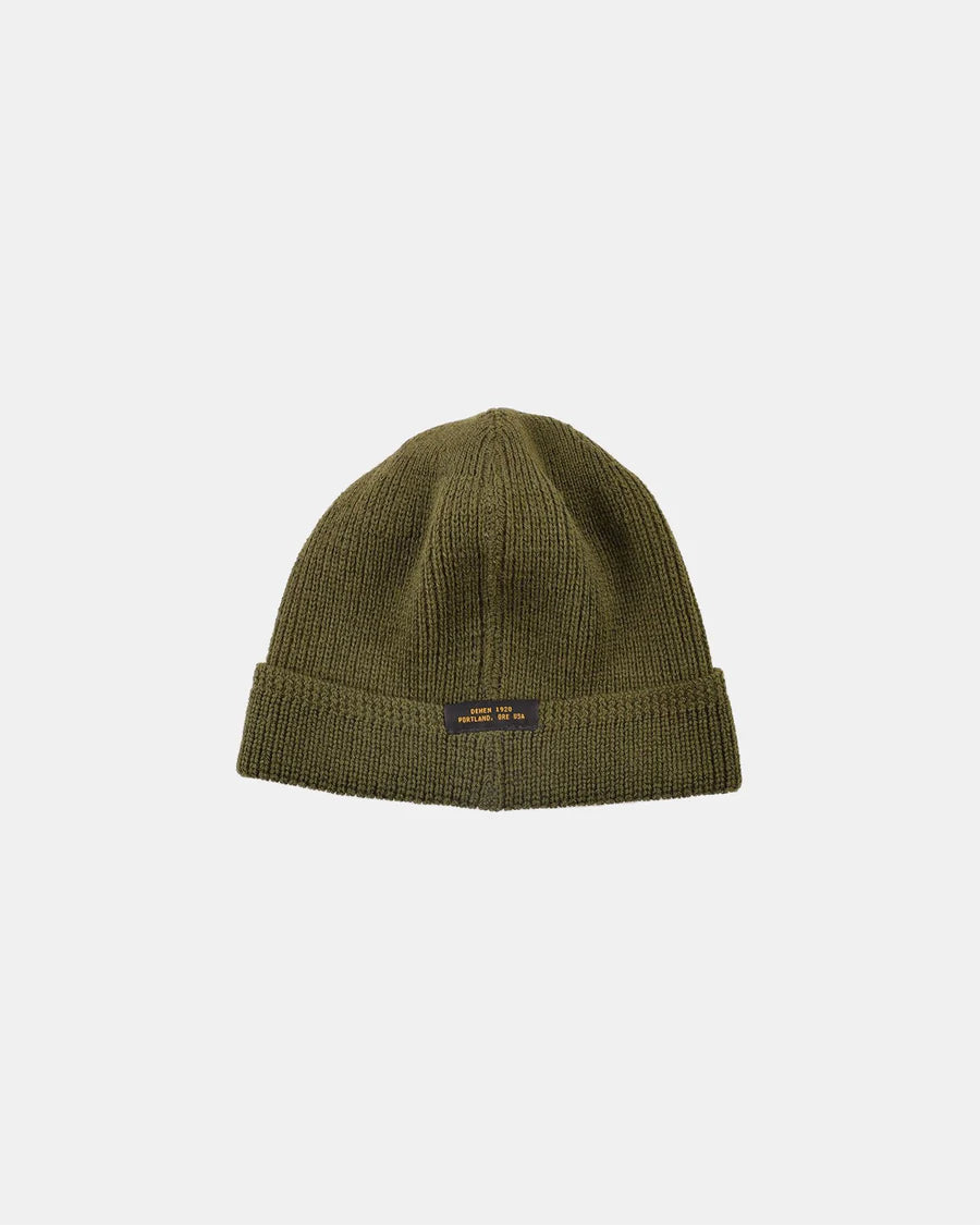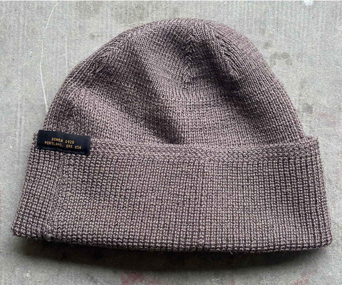 Knit from the Dehen tried and true U.S. spun worsted wool, Dehen is proud to offer the Dehen Wool Knit Watch Cap. These caps are knit using an alternative stitch to their sweaters giving them a softer, more forgiving hand. The term “watch cap” was coined by sailors, who often wore these caps to keep warm while on their watch. As Dehen looks back on the late William Dehen’s service in the U.S. Navy, they found it a fitting addition to their offering.