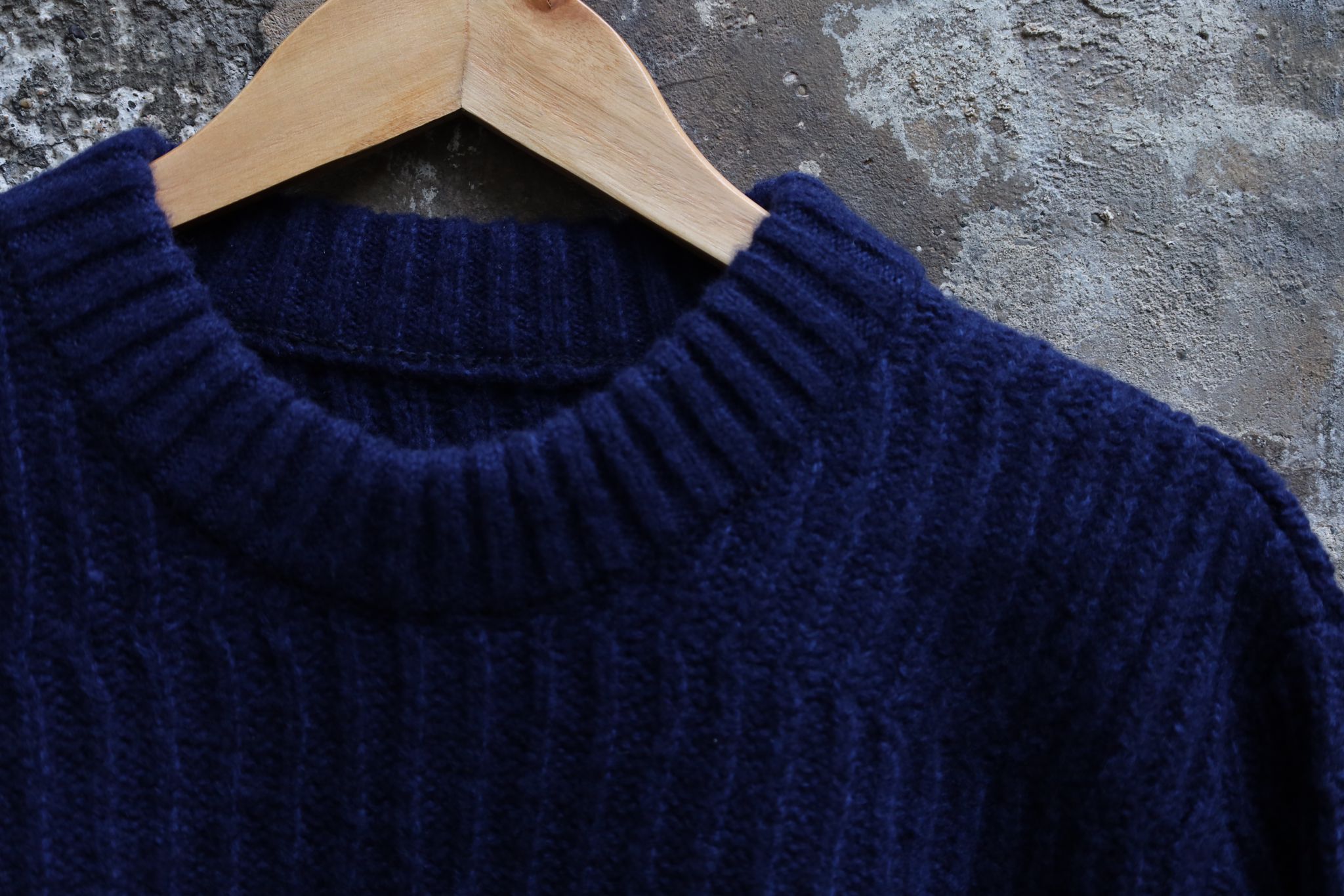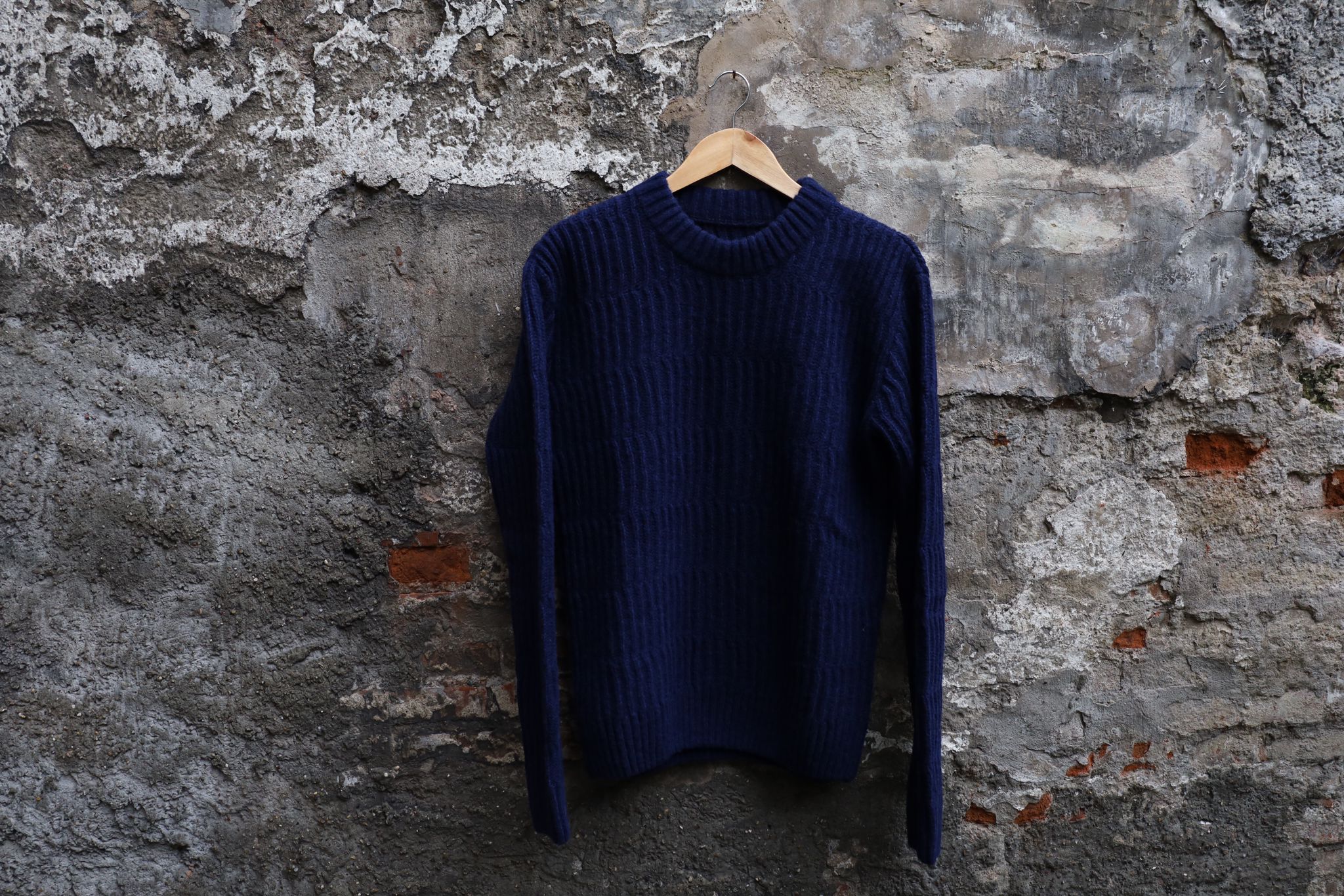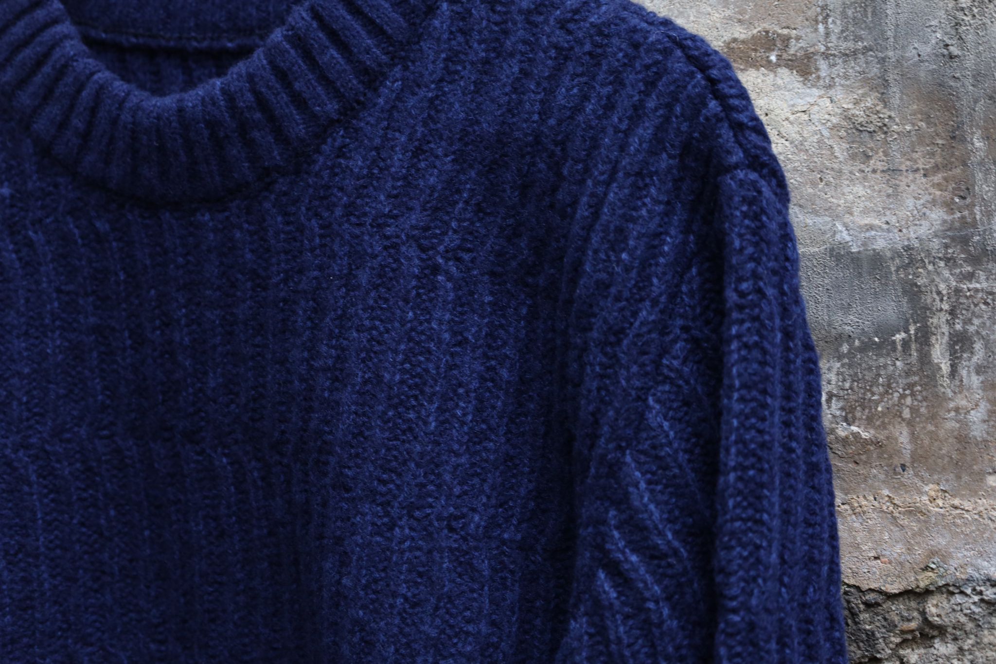 CREWNECK SWEATER IN THE FINEST ITALIAN NAVY MELANGE LAMBS WOOL