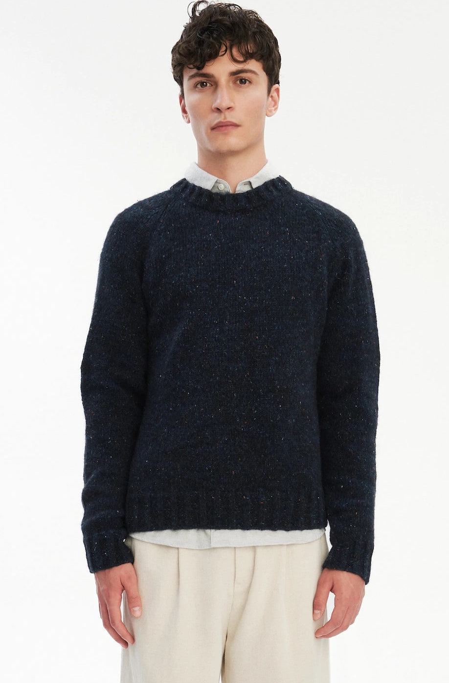 CREWNECK RAGLAN SWEATER IN A SUSTAINABLE MELANGE YARN – NAVY