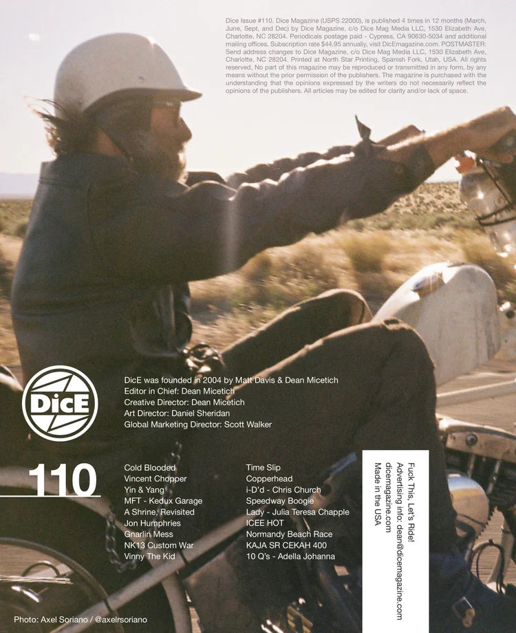 I was just telling my mate Tokyo Terry that they don’t make em like they used to but that simply ain’t the case when it comes to Issue 110 of DicE Magazine.