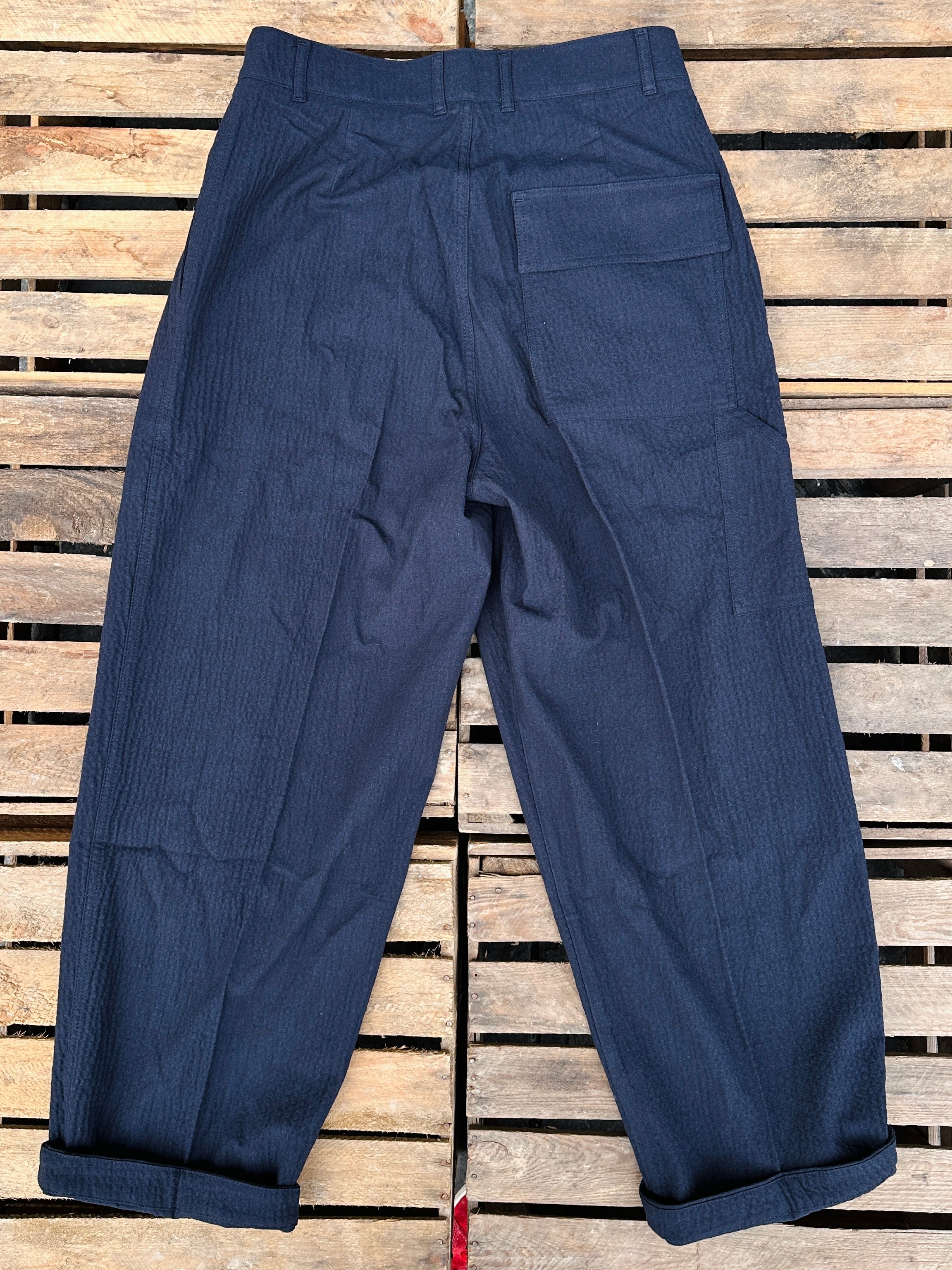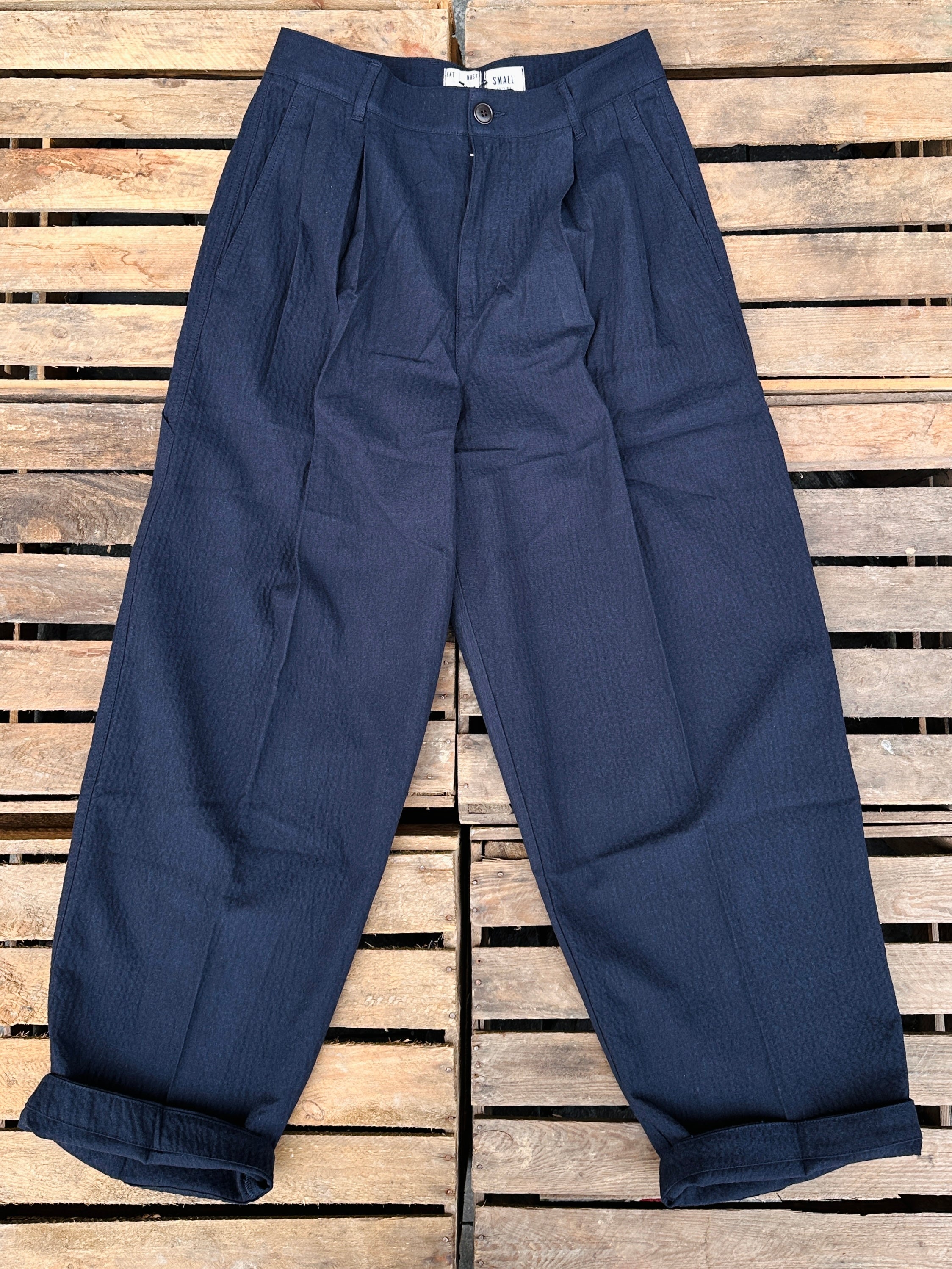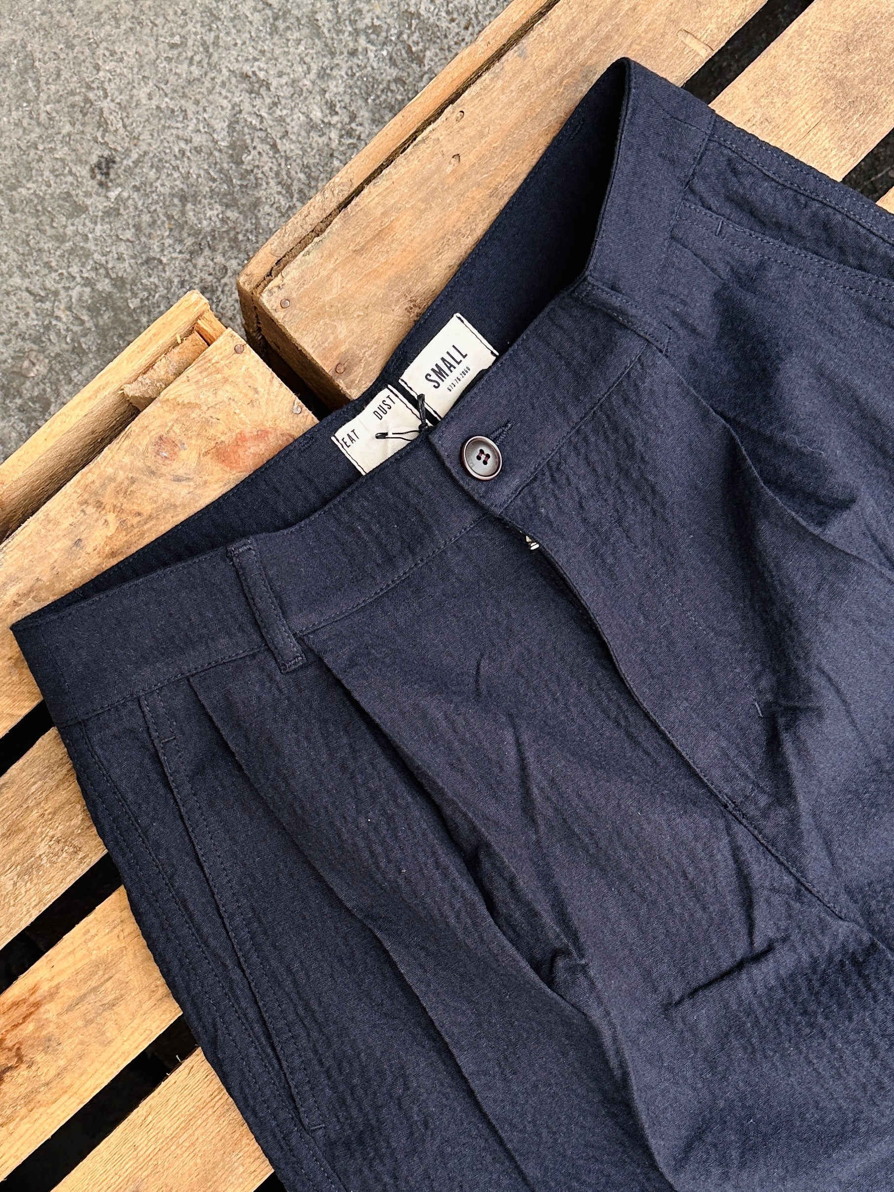 "One of our new styles for our Spring Summer 2025 season is this Ambassador Pants. This extra wide pleated carpenter style pants fits super loose with it's straight leg it stays wide all the way down. A voluminous unisex silhouette made from our seasonal Sahara cotton fabric. "