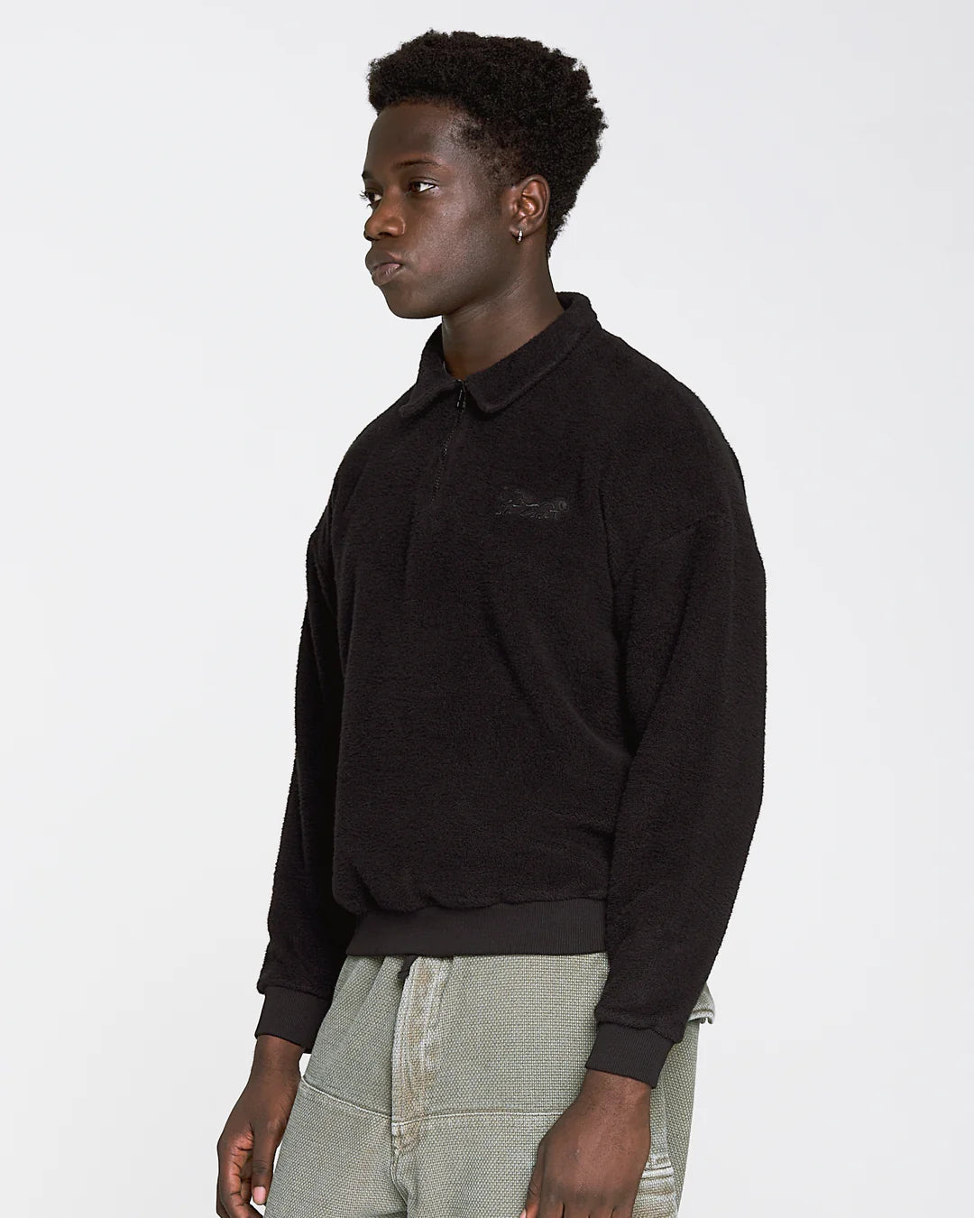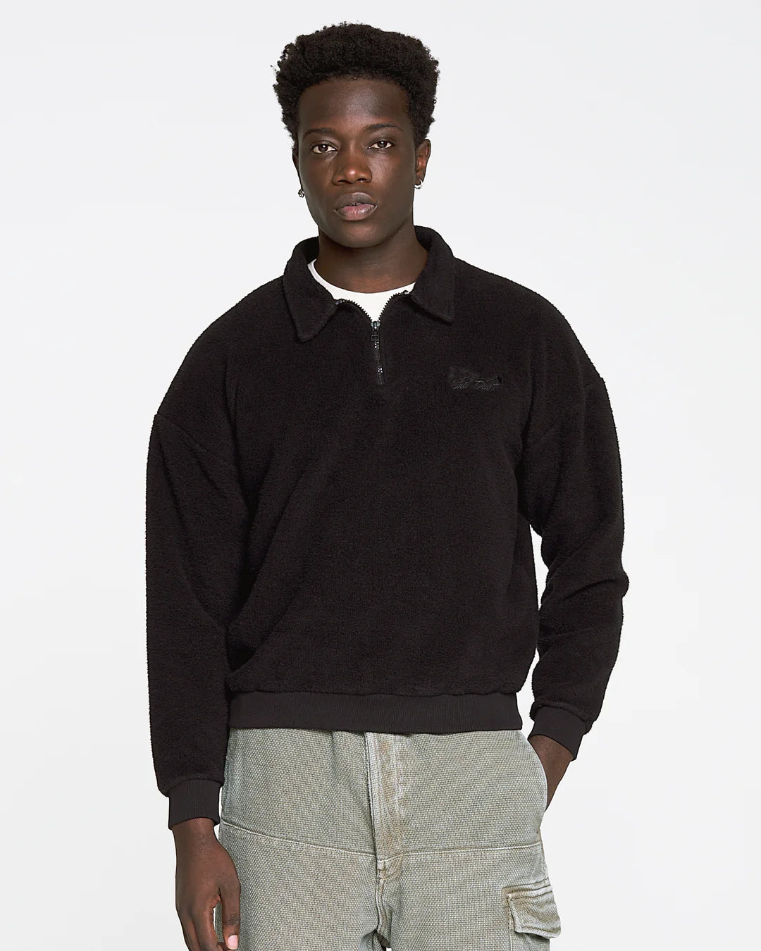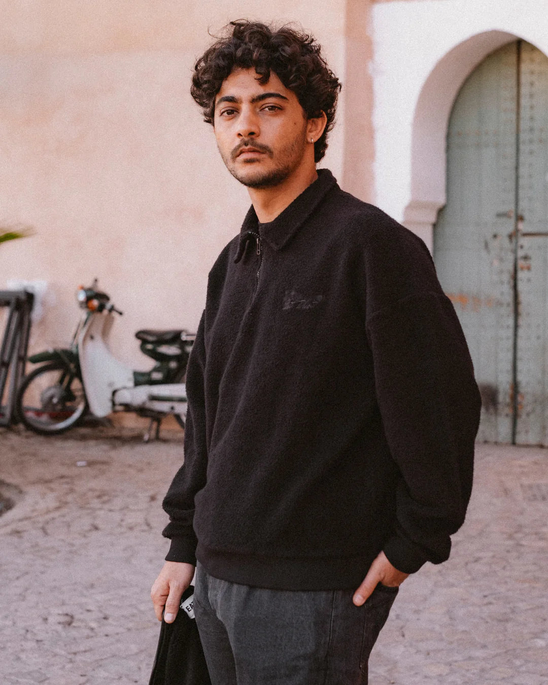 Our new Nevada Sweater is a our take on classic polo knit. It features a structured polo collar with a half-zip closure instead of buttons, made from 100% cotton with a soft peluche outer layer. The smooth cotton construction provides comfort while maintaining a relaxed look, perfect for layering or wearing on its own.