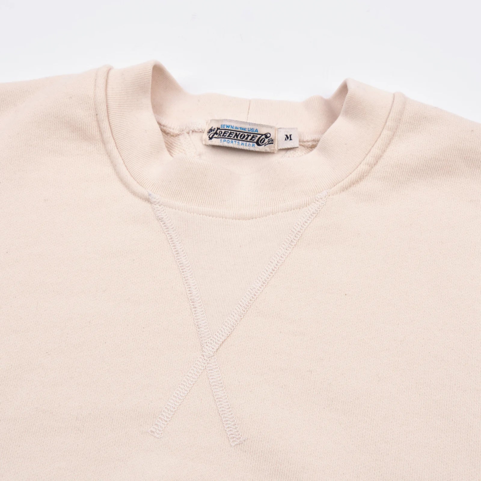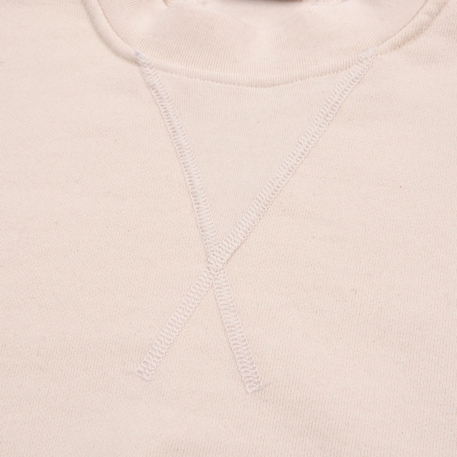 "The Deck Sweatshirt is built off a WW2 era military spec sweatshirt. We updated the construction to flat lock seams, and opened up the overall fit allowing for better movement and comfort. The front neck triangle detail is made of ribbing which helps expand the neck opening when trying on the sweatshirt. We also added ribbed gussets to the armpit opening."