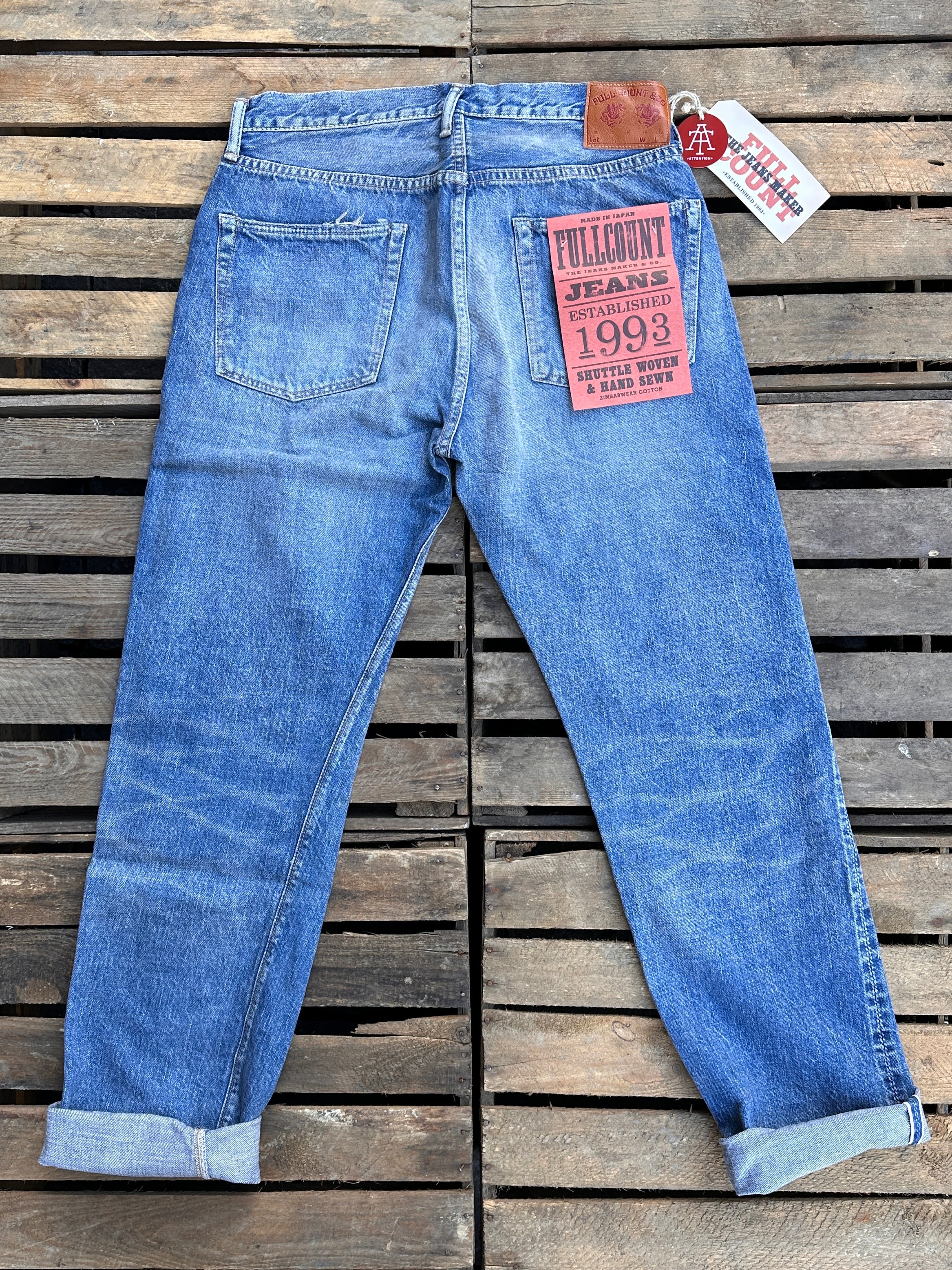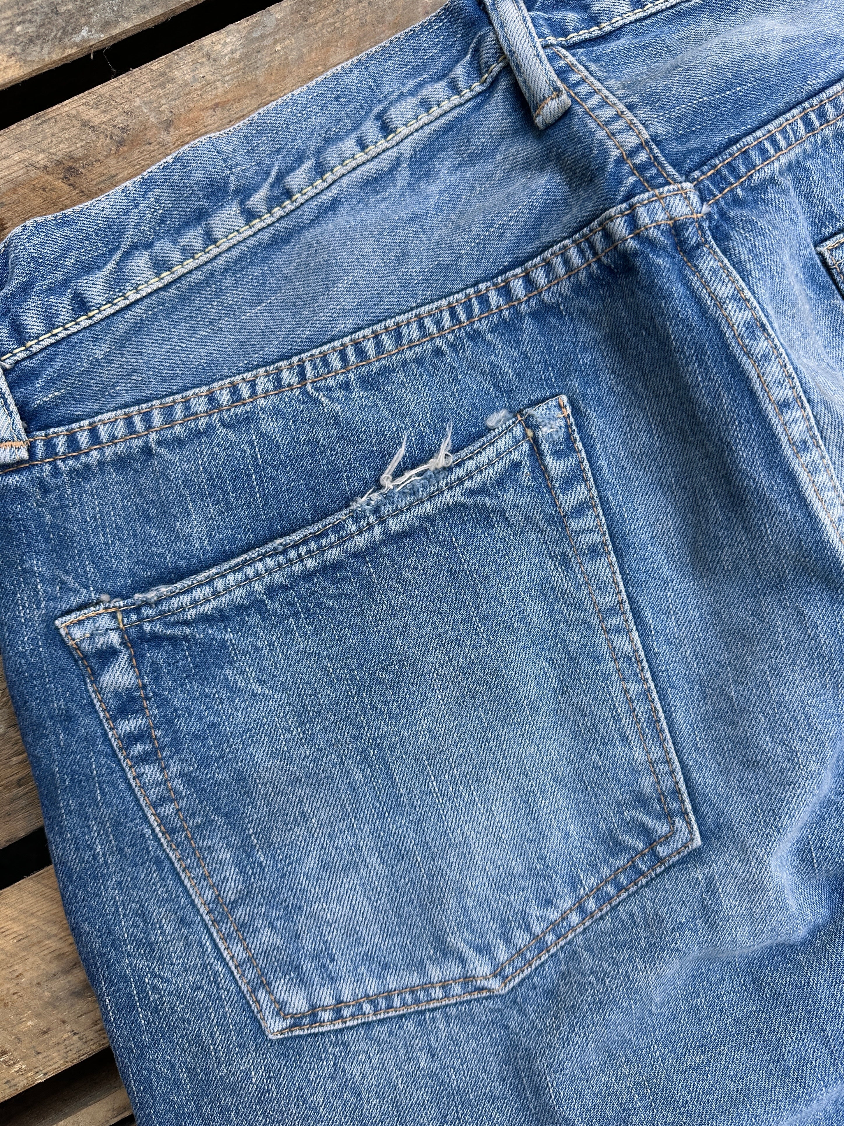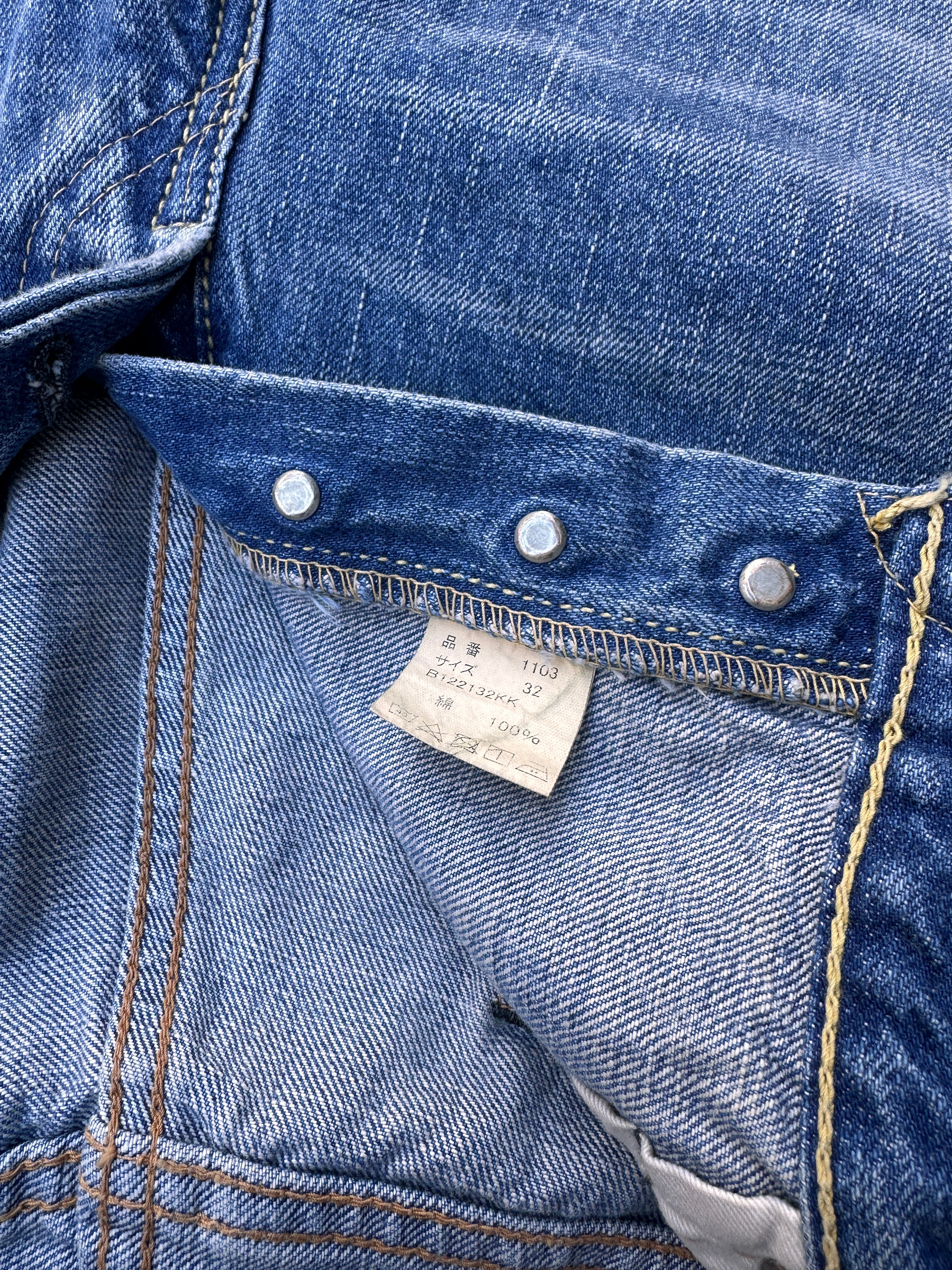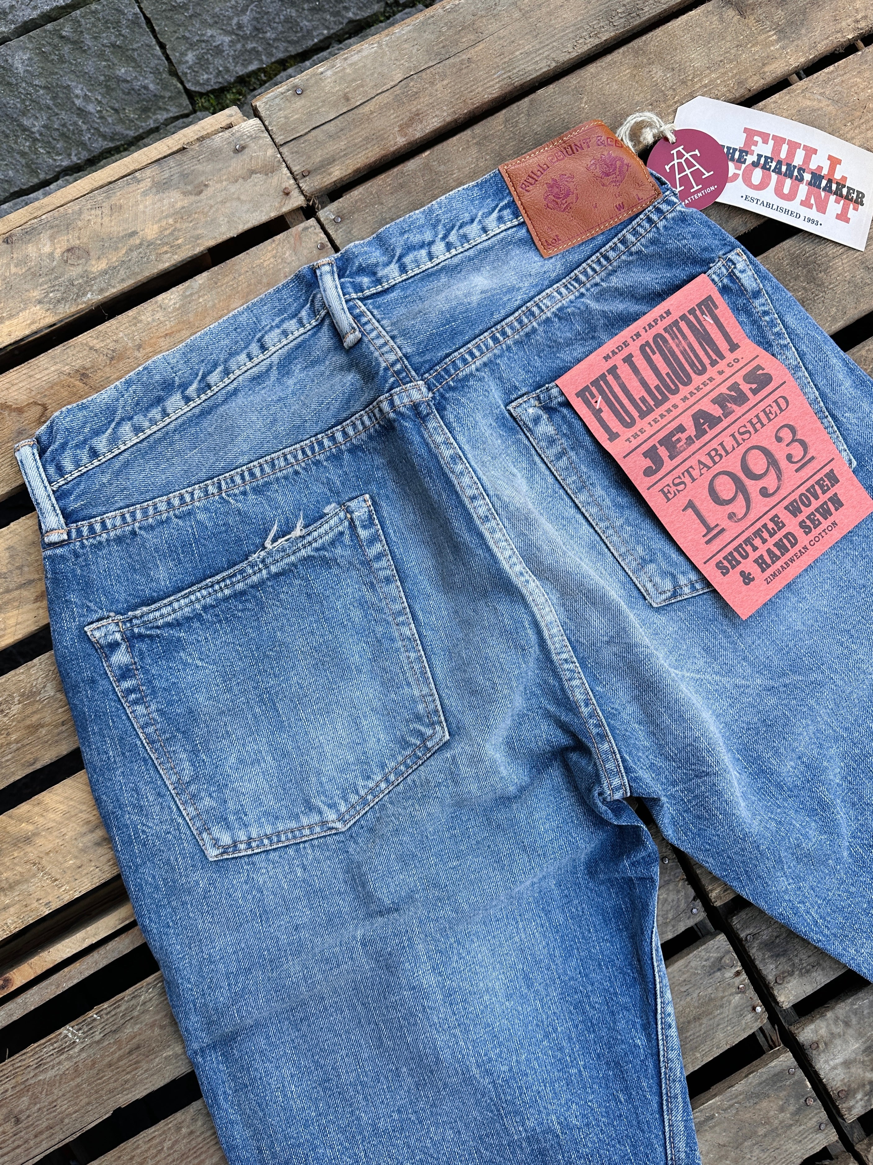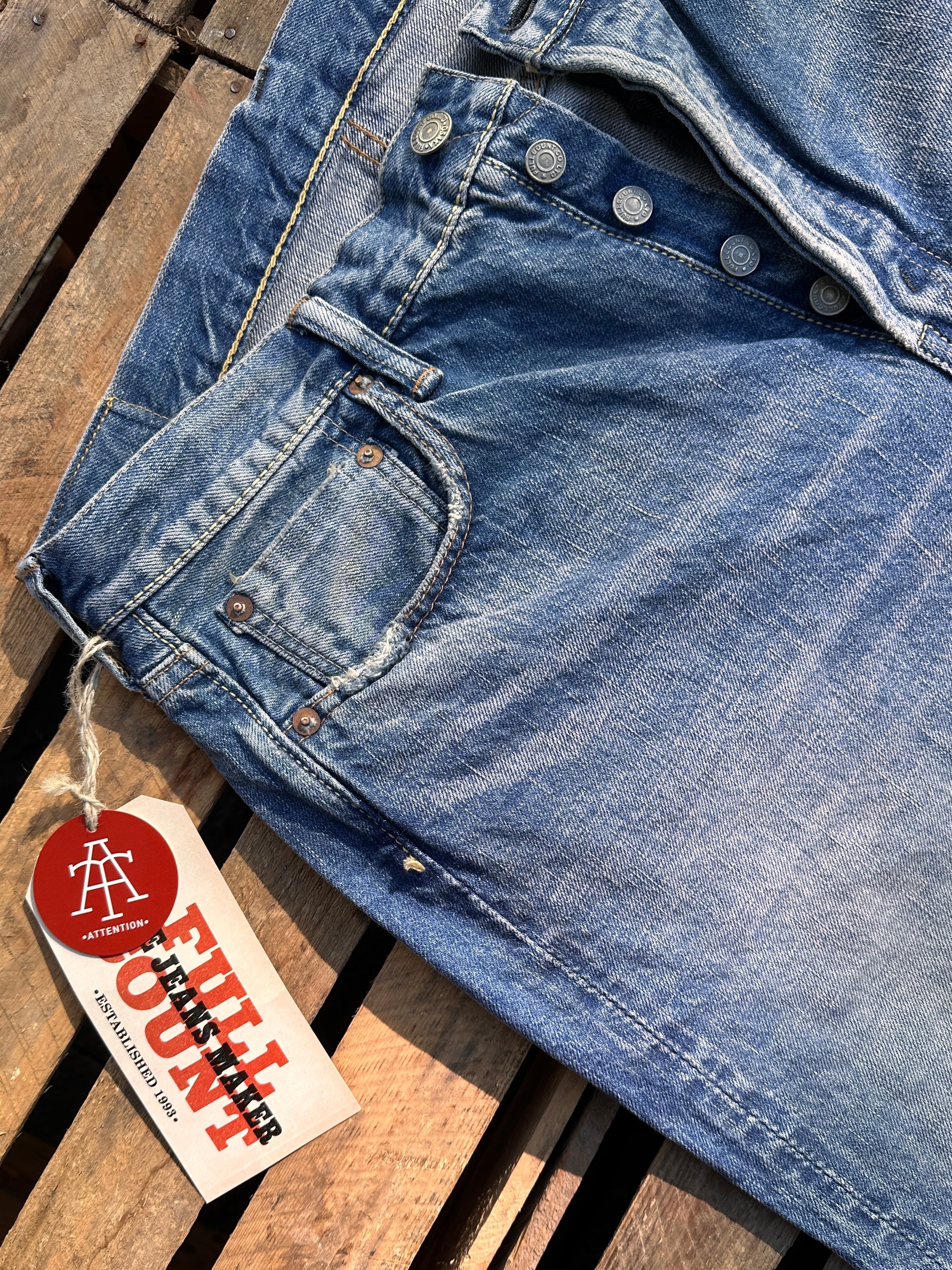 "A middle straight fit created for the brand’s 30th anniversary, bridging the 1101 and 1108. Launched for the brand’s 30th anniversary, the 1103 features the thigh width of the 1101 and the hem width of the 1108, creating a middle straight silhouette. It's a clean silhouette that reflects decades of trend evolution and is positioned as a “new classic.” Located about 25km southeast of London, Dartford was integral in the formation of the legendary Rolling Stones when Mick Jagger and Keith Richards met on Platform 2 at the local station in 1961. These Jeans are inspired by the color of the denim jacket that Mick Jagger wore in his young and crazy days. The slightly yellowed tint, the heavy creases and fades, and the wear-and-tear are unparalleled. Done in our classic and comfortable 100% Zimbabwe cotton, this is comfortable to wear in all seasons. A very versatile item indeed."