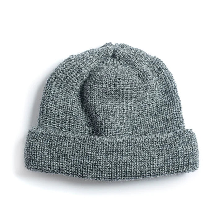 Based on the standard issue USN watch cap worn during WWII, the Heimat Mechanics Hat is made distinct by its short profile and deep brim, which can either be worn above the ears, or rolled down as needed. You could say there is a strong family resemblance between the Heimat hats and their jumpers. They use the same premium virgin wool with natural self-cleaning and water-resistant properties and the same distinctive 5-gauge knit. As ever, these are lovingly made in their factory in Germany. 100% Virgin Wool. Knitted in Germany. 5-Gauge Knit. 9cm Brim. Natural Self Cleaning and Water-Resistant Properties