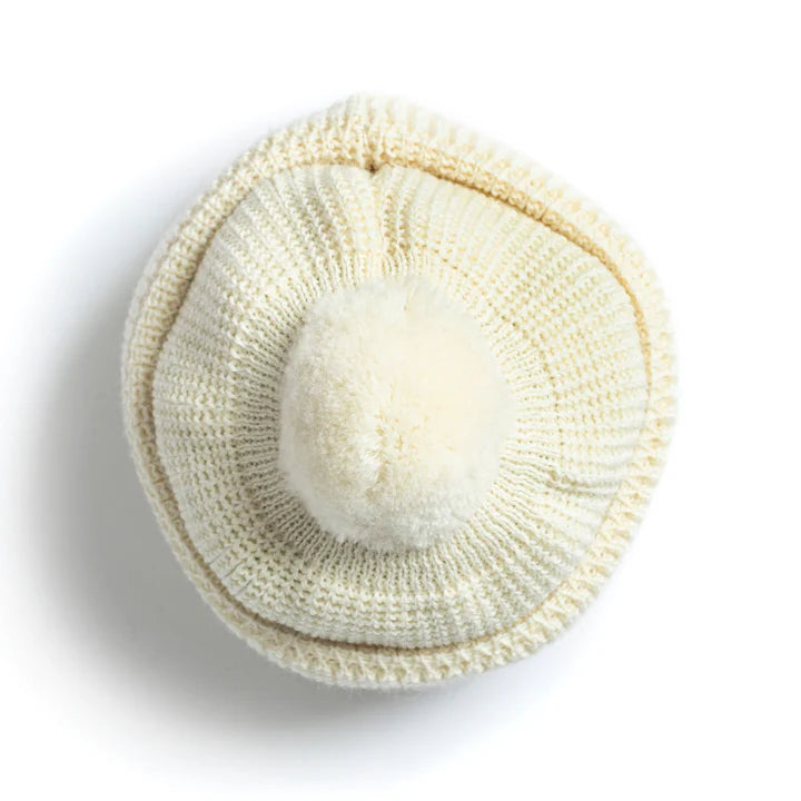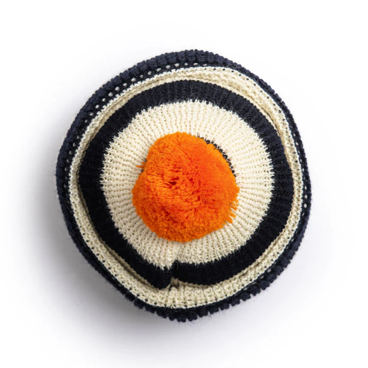 It is hand finished, due to the sophisticated knitting technique it will mold to your head just after a few wears. Keep your head safe.
