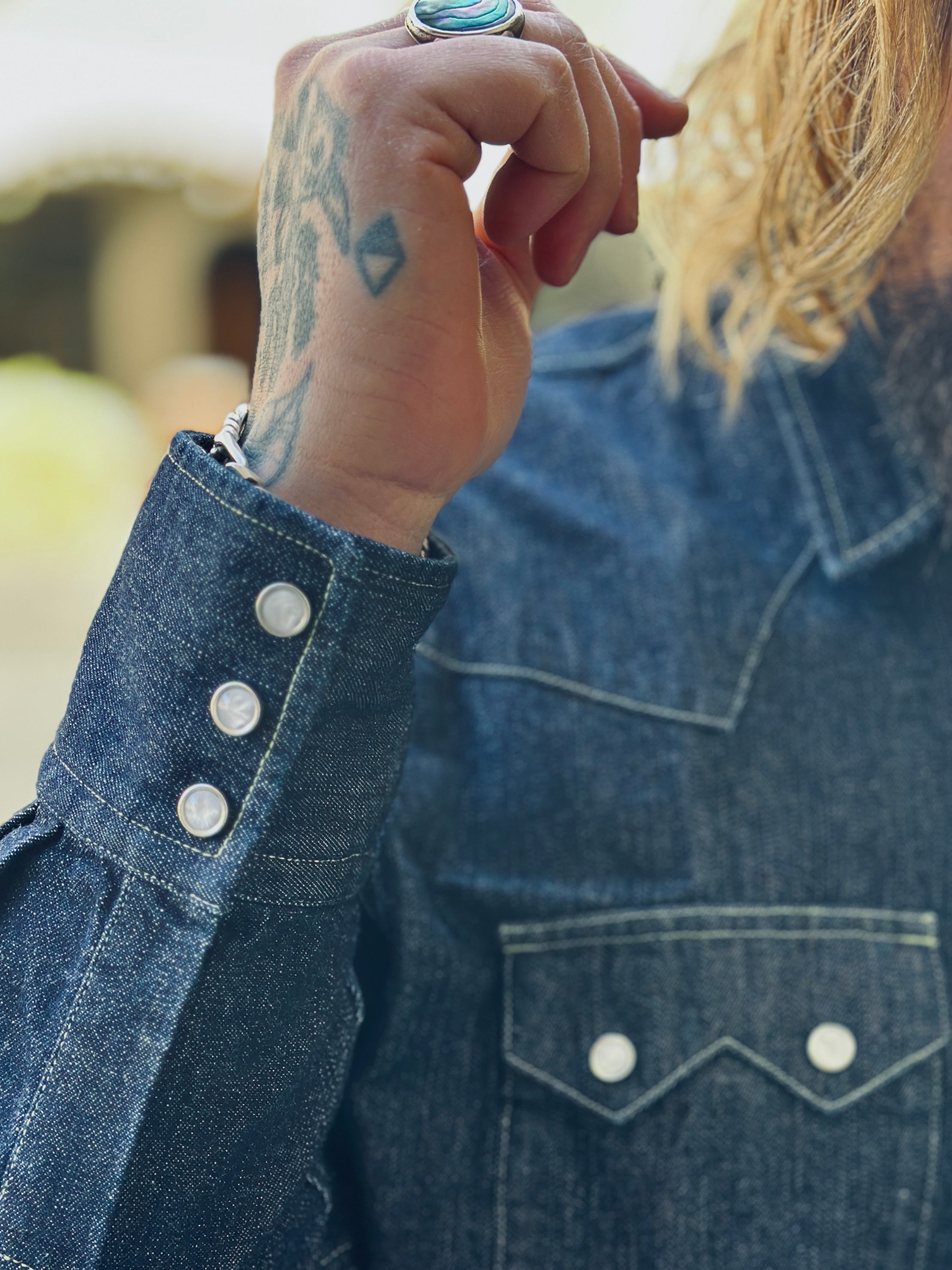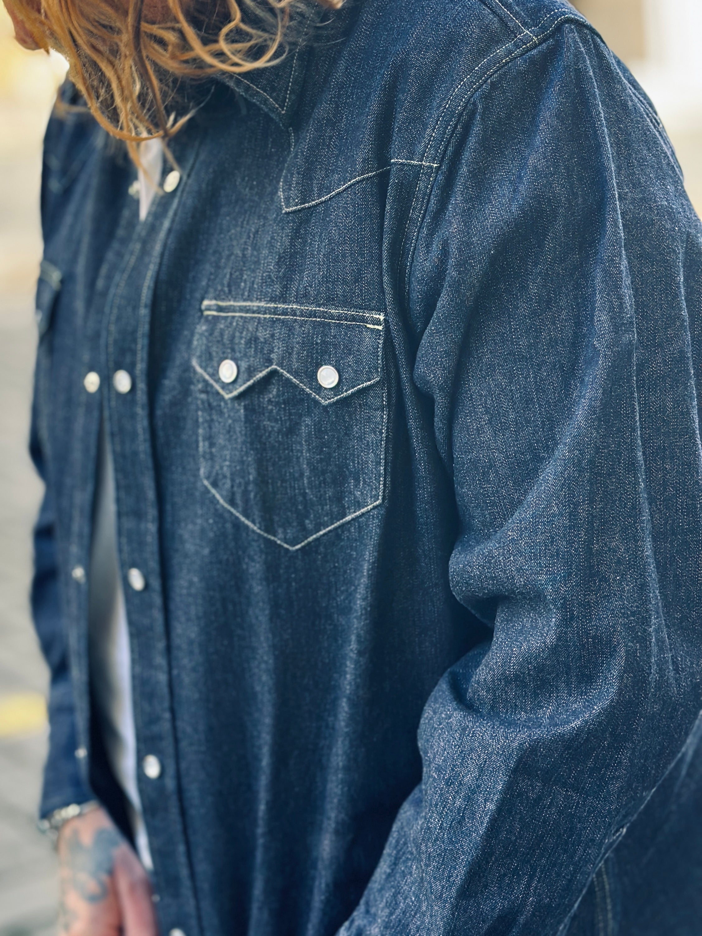 New Bowman Shirt from Indigofera, Western Shirt, Snap Buttons, Western Yoke, Two chest Pockets.