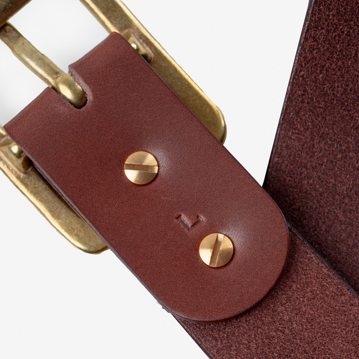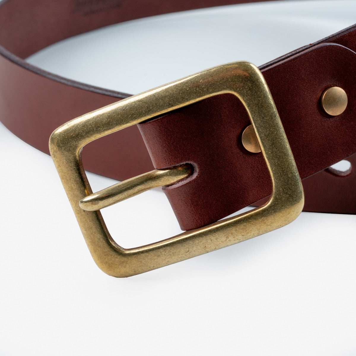 A heavy-duty cowhide belt made using Mishiba crop by Tochigi Leathers, arguably one of the best tanneries in Japan. Complete with a solid brass garrison buckle.