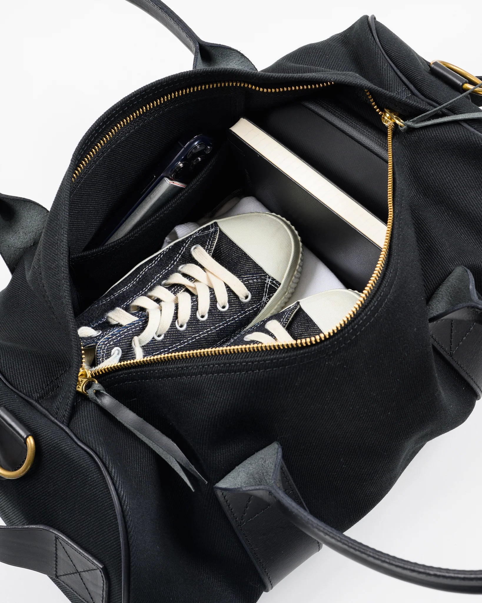Iron Heart | IHE-24-BLK | 21oz Denim and Buttero Leather Holdall | Superblack