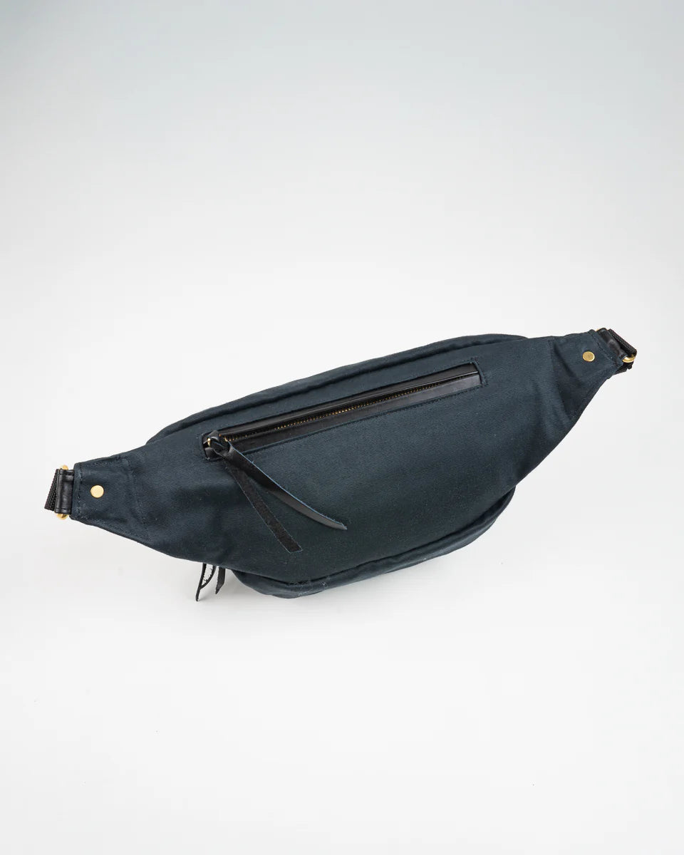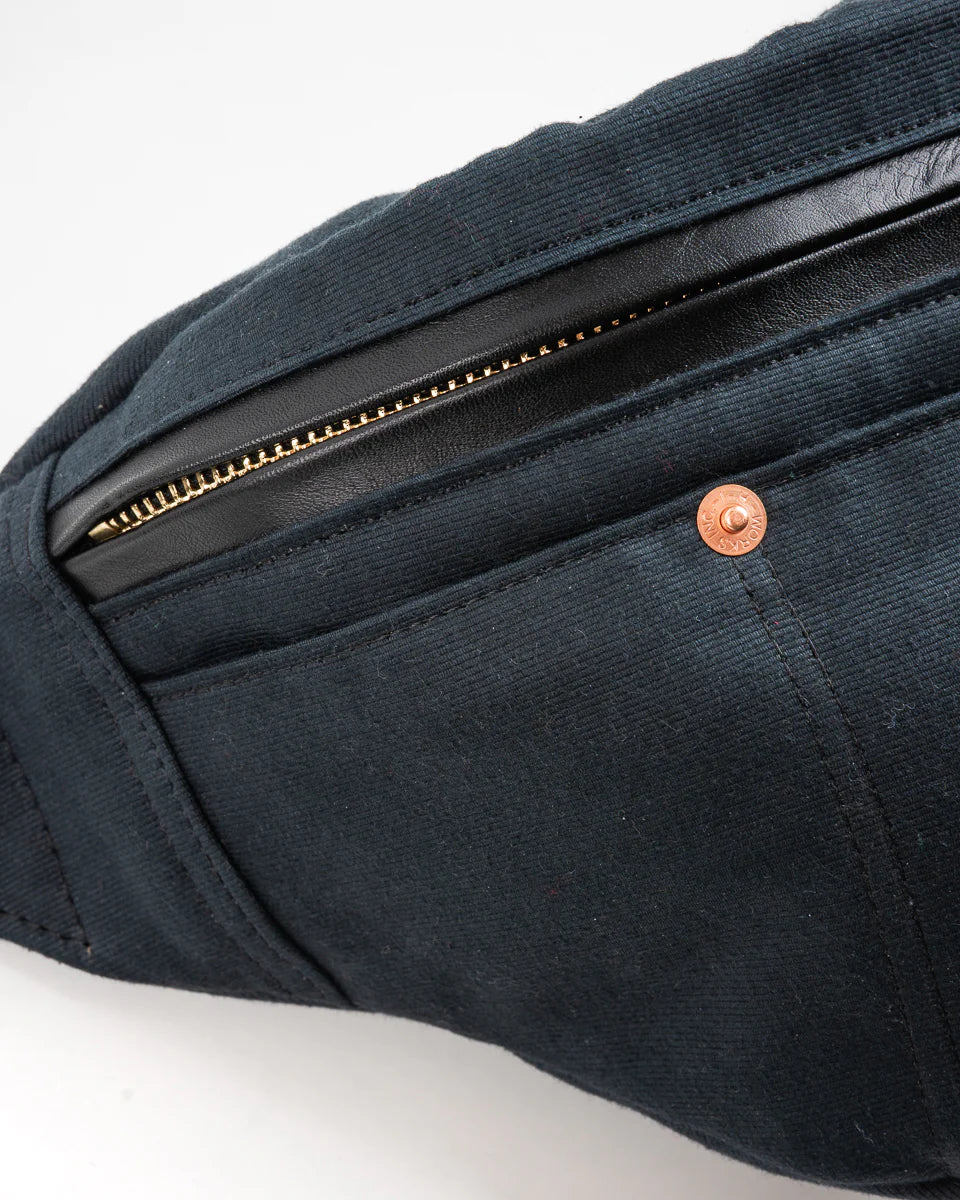 Made from 12oz Japanese whipcord—the same fabric as the IH deck jackets—this is a tough, lightweight version of the classic waist bag. Designed to be worn crossbody or around the waist, it features a large main compartment that easily fits a 1-litre water bottle, smartphone, and wallet, along with a discreet rear pouch ideal for passports and other valuables. Finished with brass hardware throughout—including a two-way main zipper—this versatile carry bag keeps your everyday essentials secure and close to hand. Since the yarns of the whipcord are sulphur-dyed, the fabric will fade over time, developing vintage character as you take the bag on your travels and adventures.