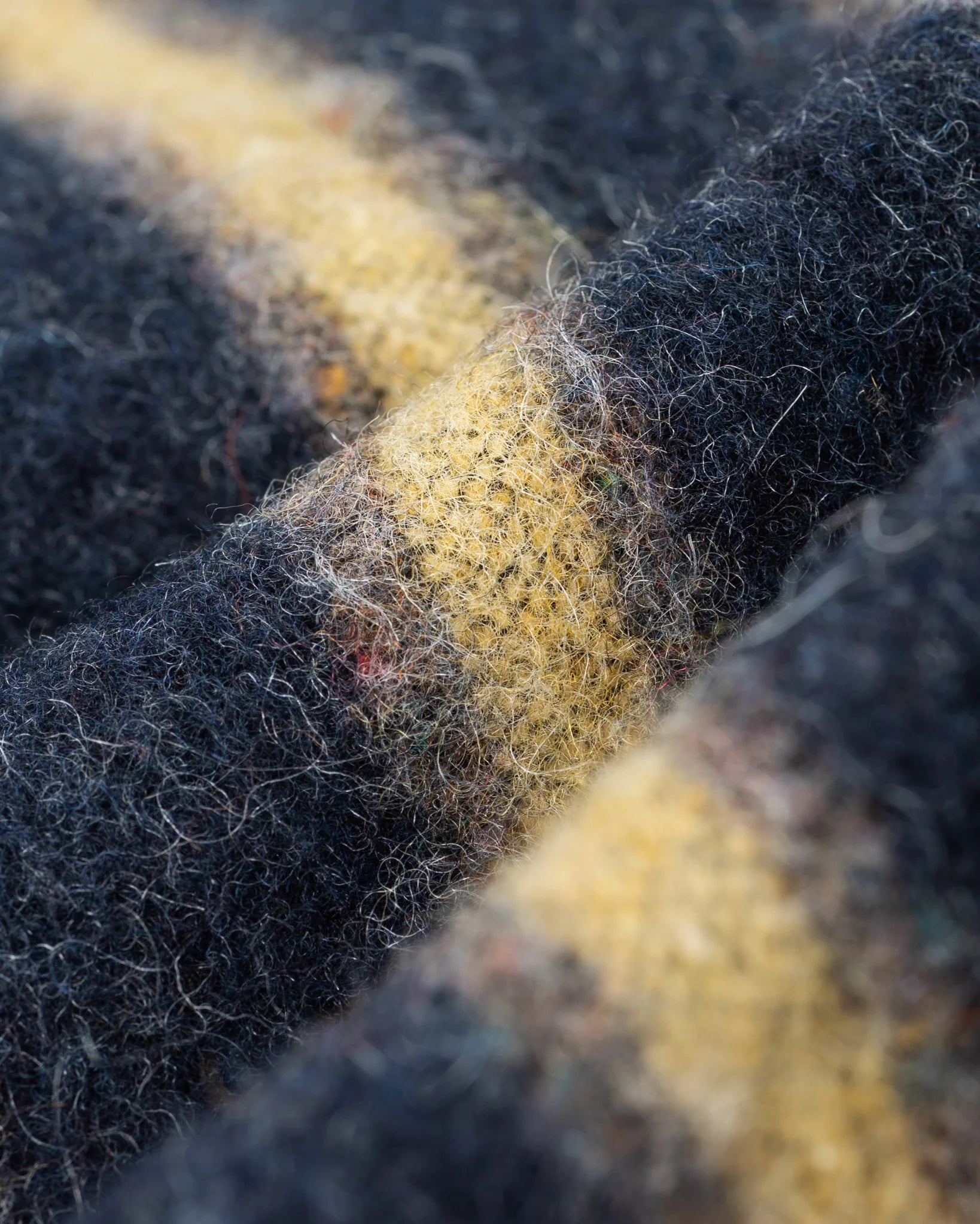 Fall/Winter ’25 introduces a new chore jacket cut to the lineup, blending practicality with contemporary style. This season’s models feature a more versatile pocket layout than previous Iron Heart coveralls, and a slimmer, more flattering silhouette. Key features of this updated cut include flapless chest pockets complete with a pen holder (inspired by the Iron Heart signature work shirts) and large flap-down waist pockets that double as side-entry handwarmers. Each pocket is secured with oversized snap fastenings for quick access, while the main placket uses heavy-duty tack buttons for strength. This model is cut from 10oz Japanese selvedge denim and lined with a recycled wool blanket for comfort and warmth. As this denim is woven with a grey/blue weft yarn, it displays a darker appearance, reminiscent of the industrial denim uniforms common in the 1800s. The use of slub yarns in the weave enhances these traditional sensibilities, adding texture and character to a fabric that promises to fade and evolve with vintage charm. The eco-friendly blanket lining is knitted from recycled wool and blended with recycled synthetics, including nylon and polyester for strength, and rayon to improve feel and garment drape. Unlike many lined jackets—where the lining is sewn into the jacket after the outer shell is constructed—for this model, everything is constructed simultaneously. This involves layering the denim and blanket as the pattern is cut, then folding both fabrics together as the seams are stitched. This construction method creates the strongest bond between the fabrics, ensuring the lining will never pull apart from the outer shell. The end result is a hardwearing chore jacket that combines timeless workwear style with cold weather comfort.