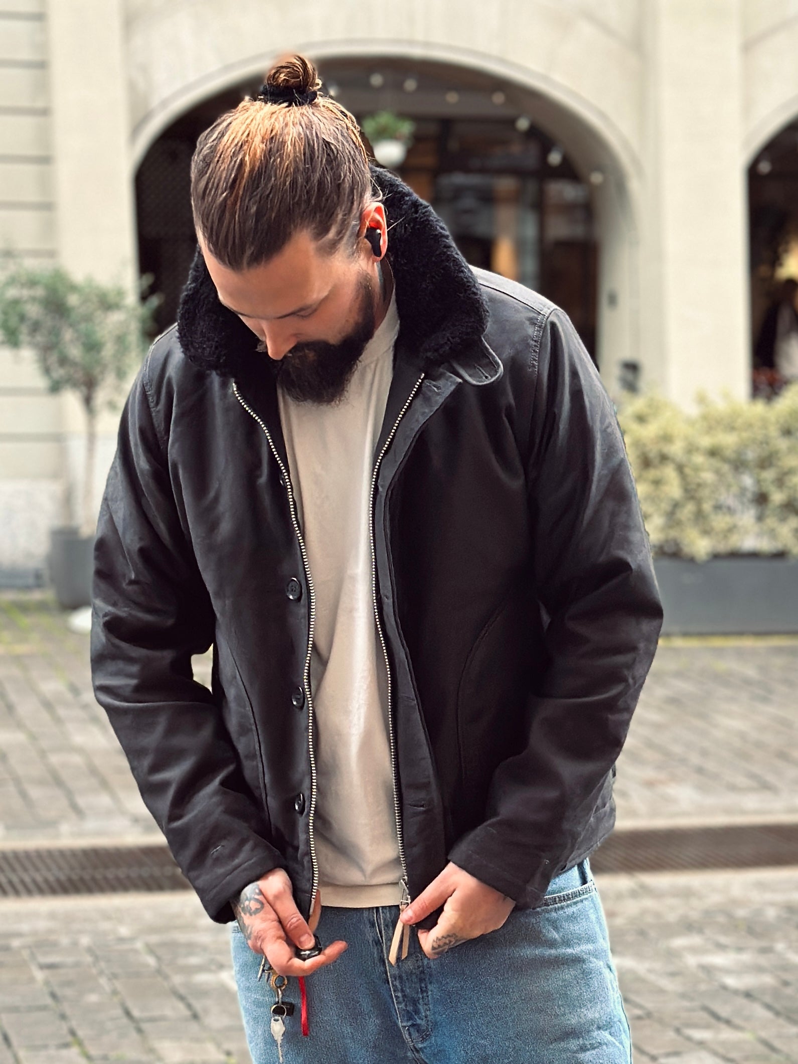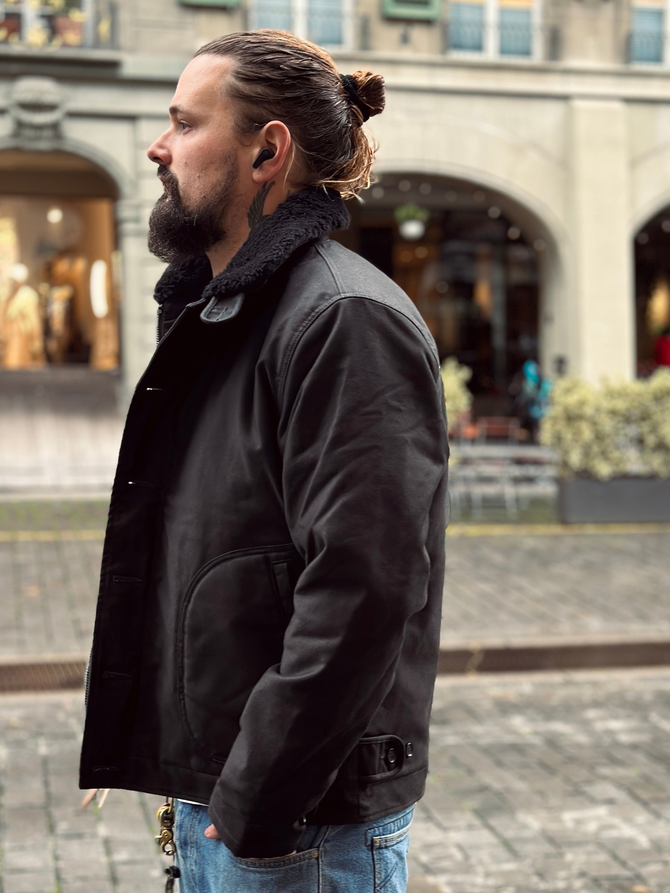 The classic N1 deck jacket was first produced for the US Navy in the early 1940s. Much copied since then, it has become a true style icon in its own right. The Iron Heart version remains pretty true to the original jackets on the basis that "if it ain't broke, don't fix it". The one major, but unseen, change we have made is to add an additional interlining to increase wind resistance. A truly warm and great-looking winter jacket.