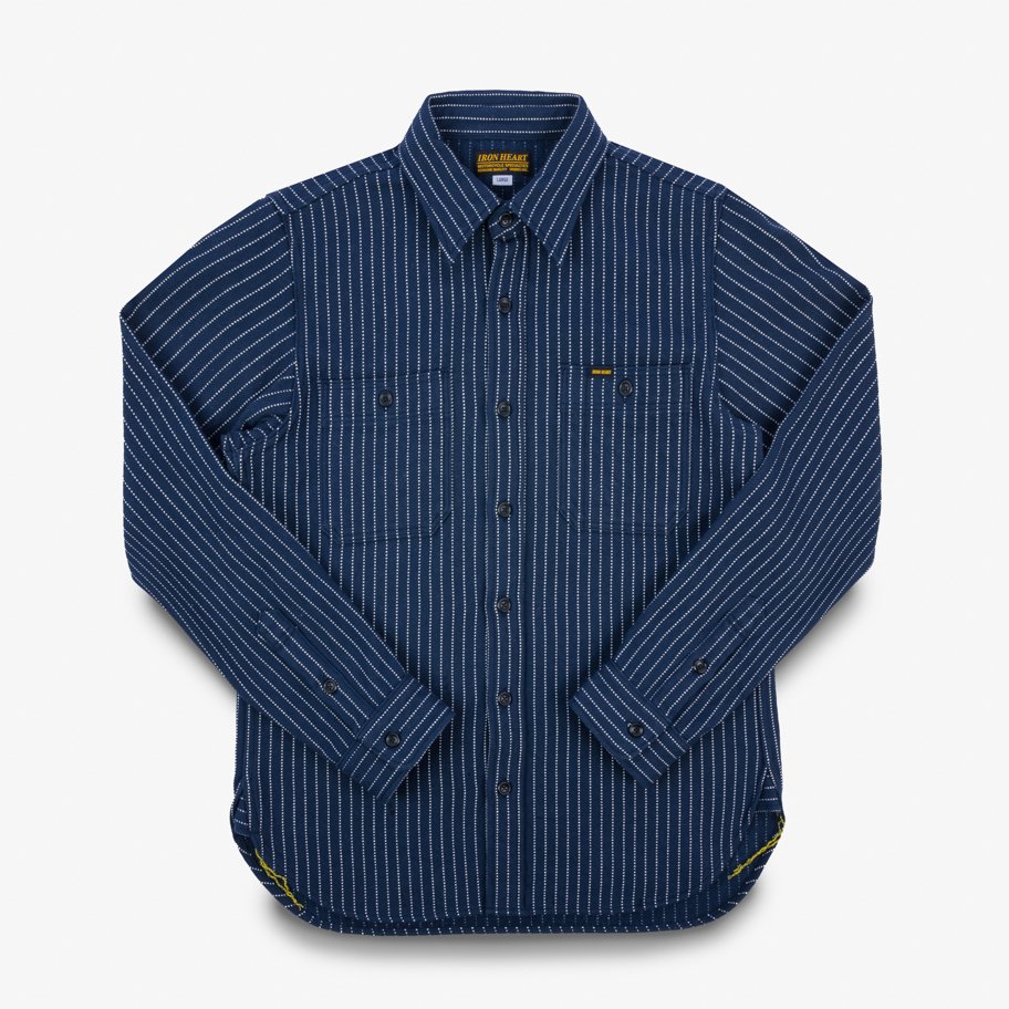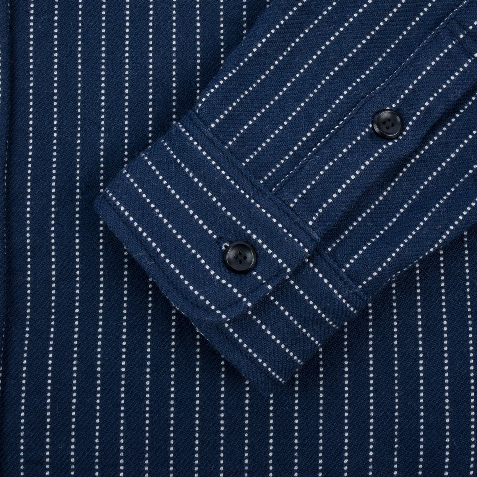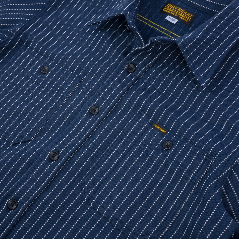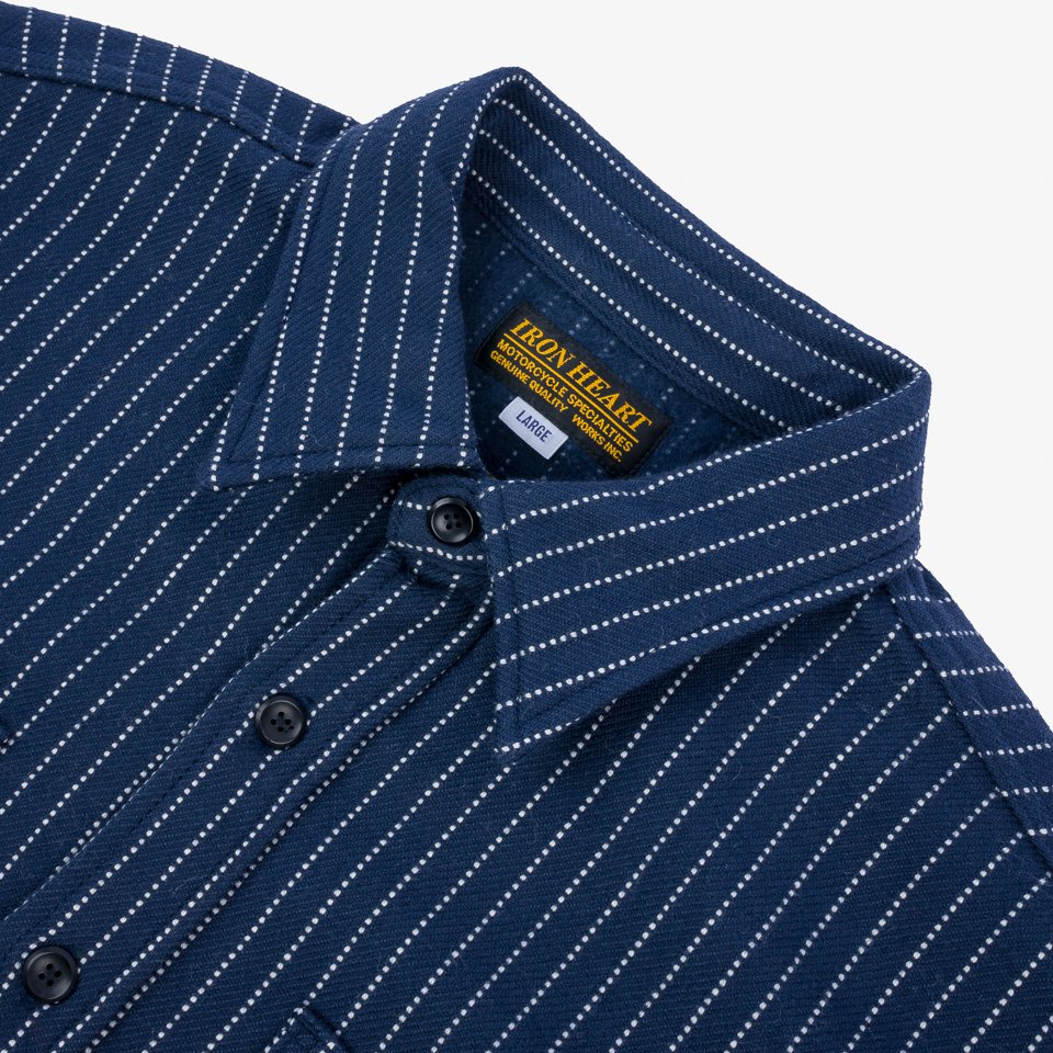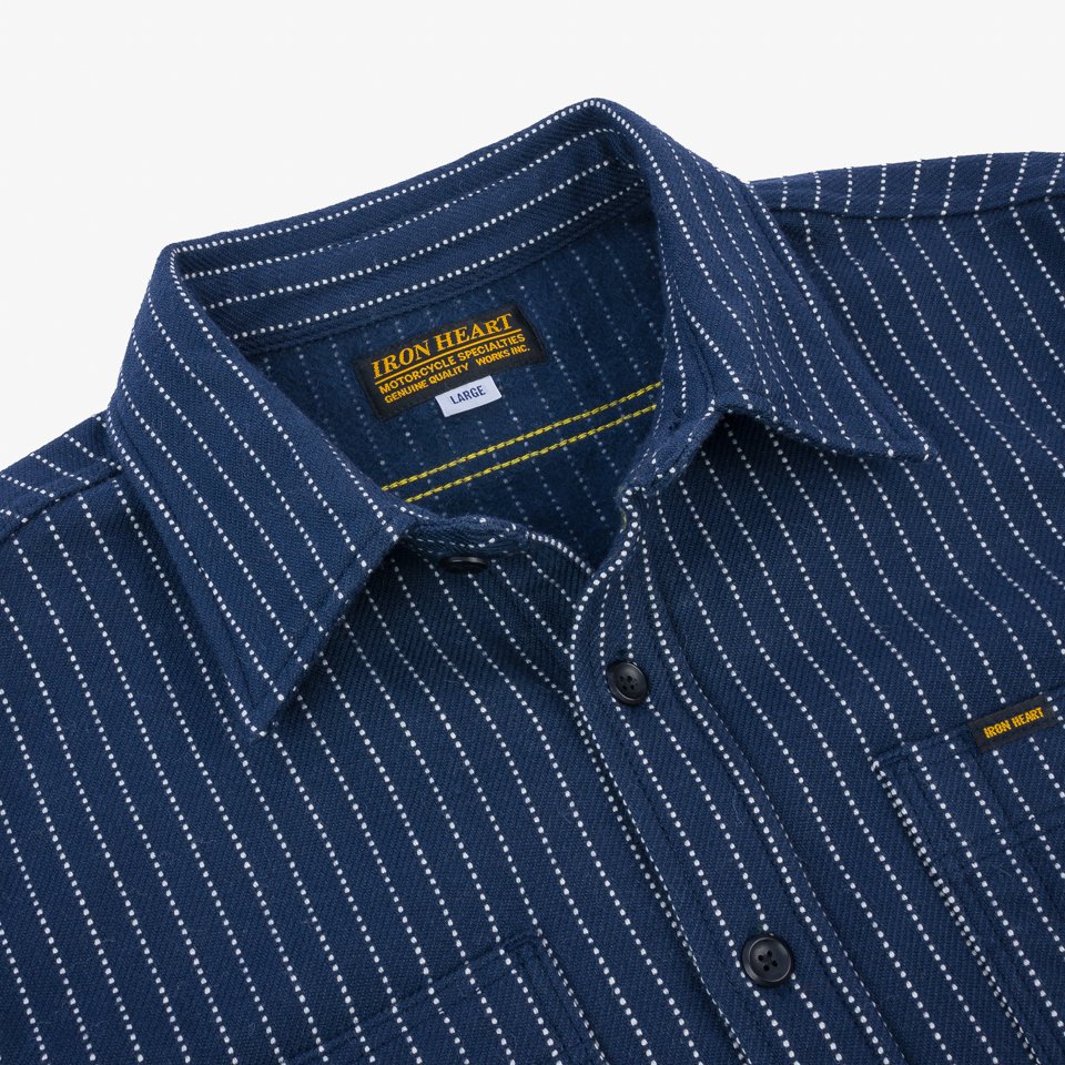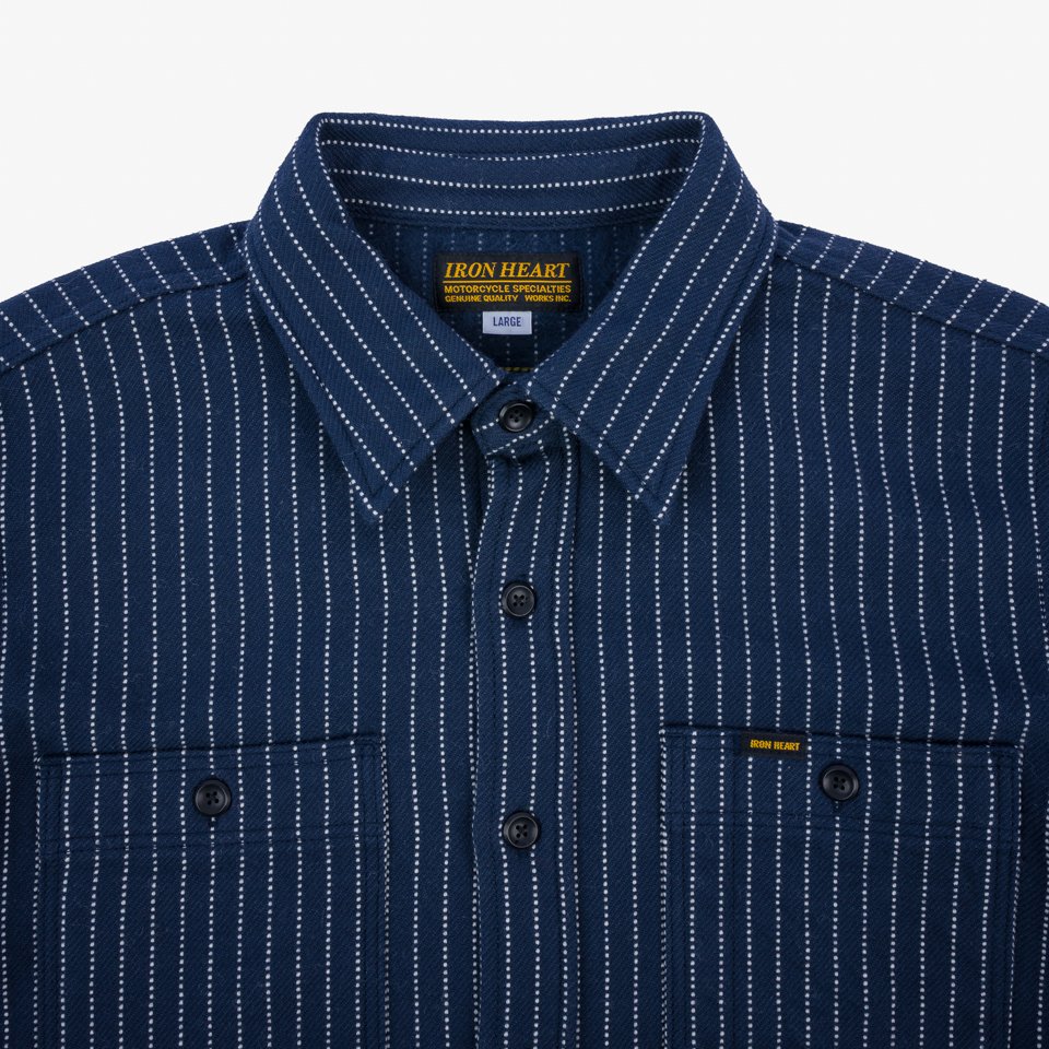 Iron Heart | IHSH-402-NAV | 12oz Ultra Heavy Flannel Chalk Stripe Work Shirt | Navy