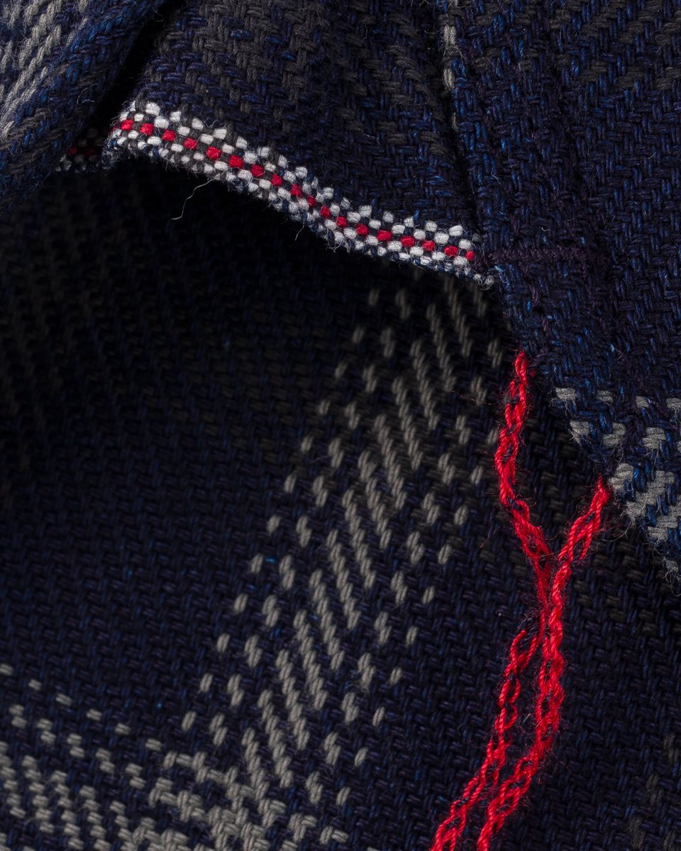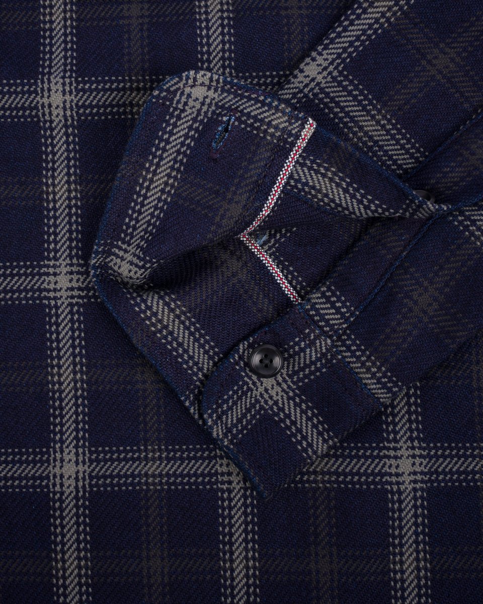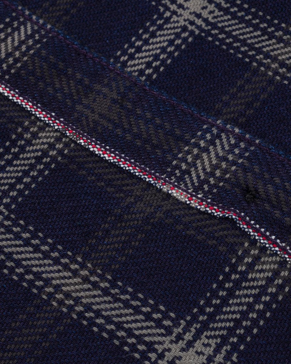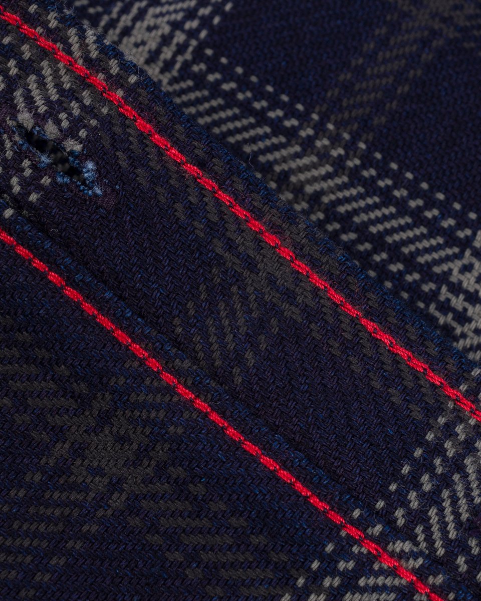 Please note, to differentiate this colourway from the pure indigo shirts, Iron Heart refers to this plaid as a “black”. However, in person, the dominant colour appears more of a deep indigo hue, which will gradually lighten with wear and washing.
