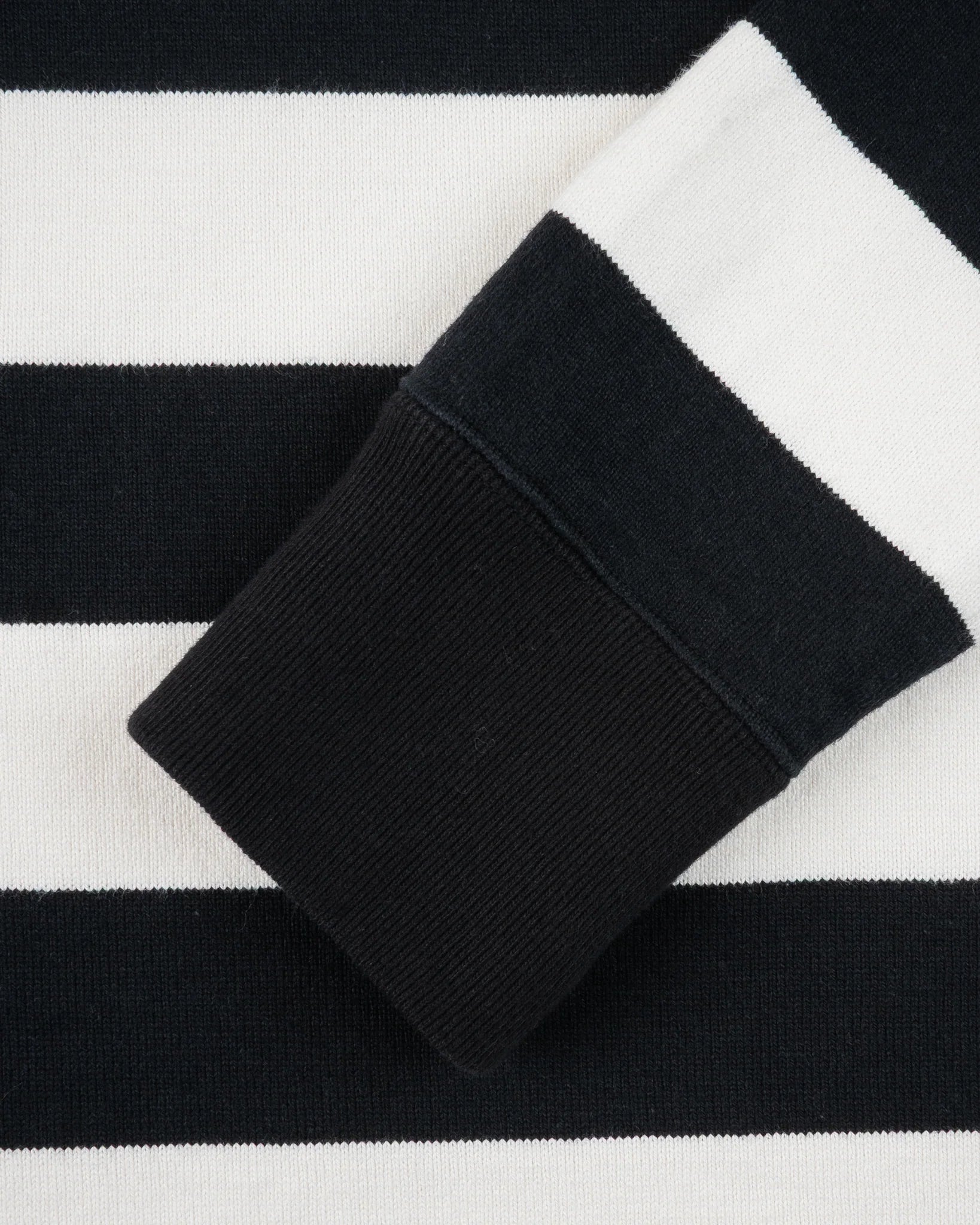 Heavyweight long-sleeved knitted cotton sweater with statement stripes. One-washed to minimize/eliminate shrinkage. So heavy, it's almost rude to call it “just” a sweater.