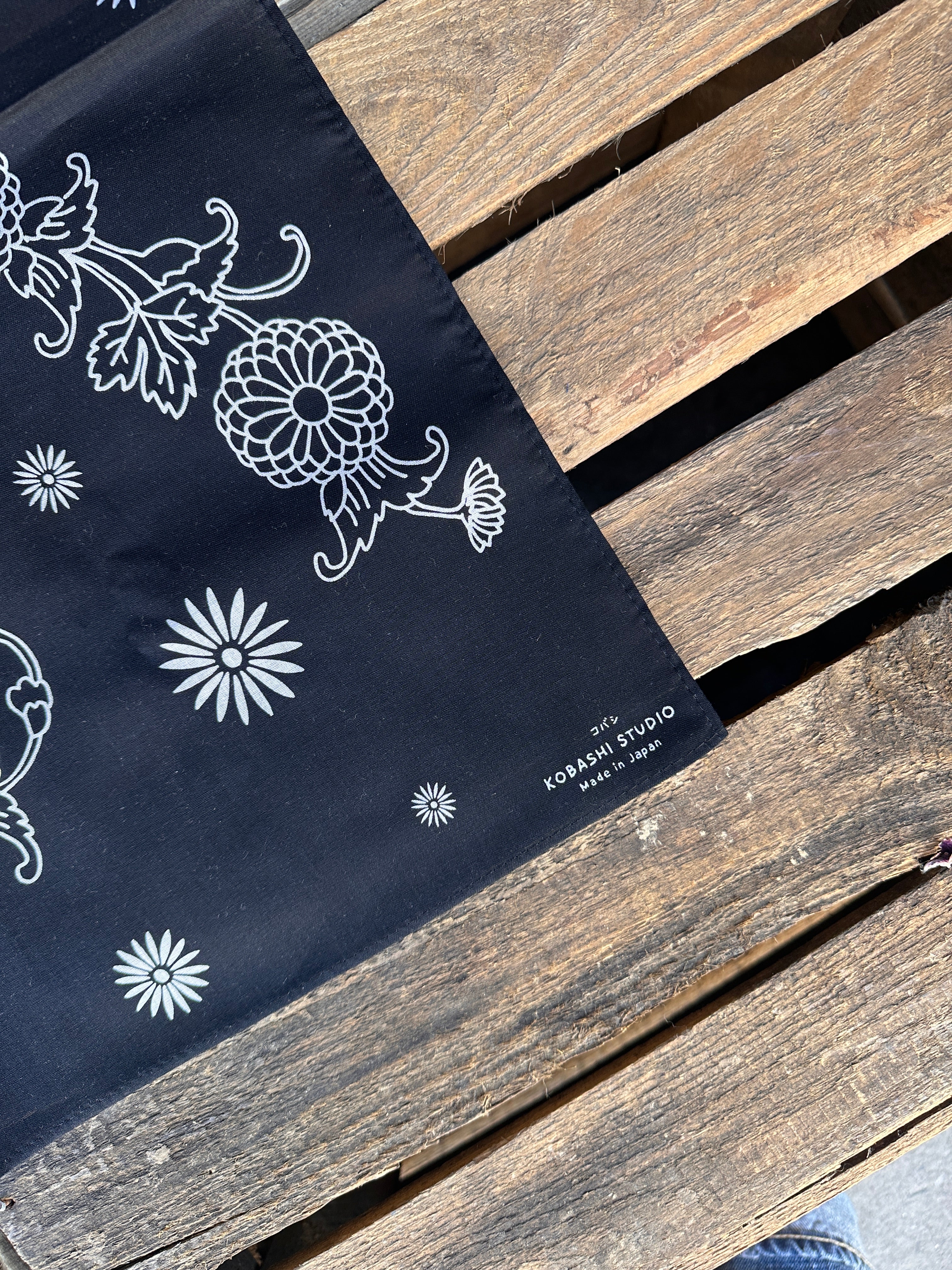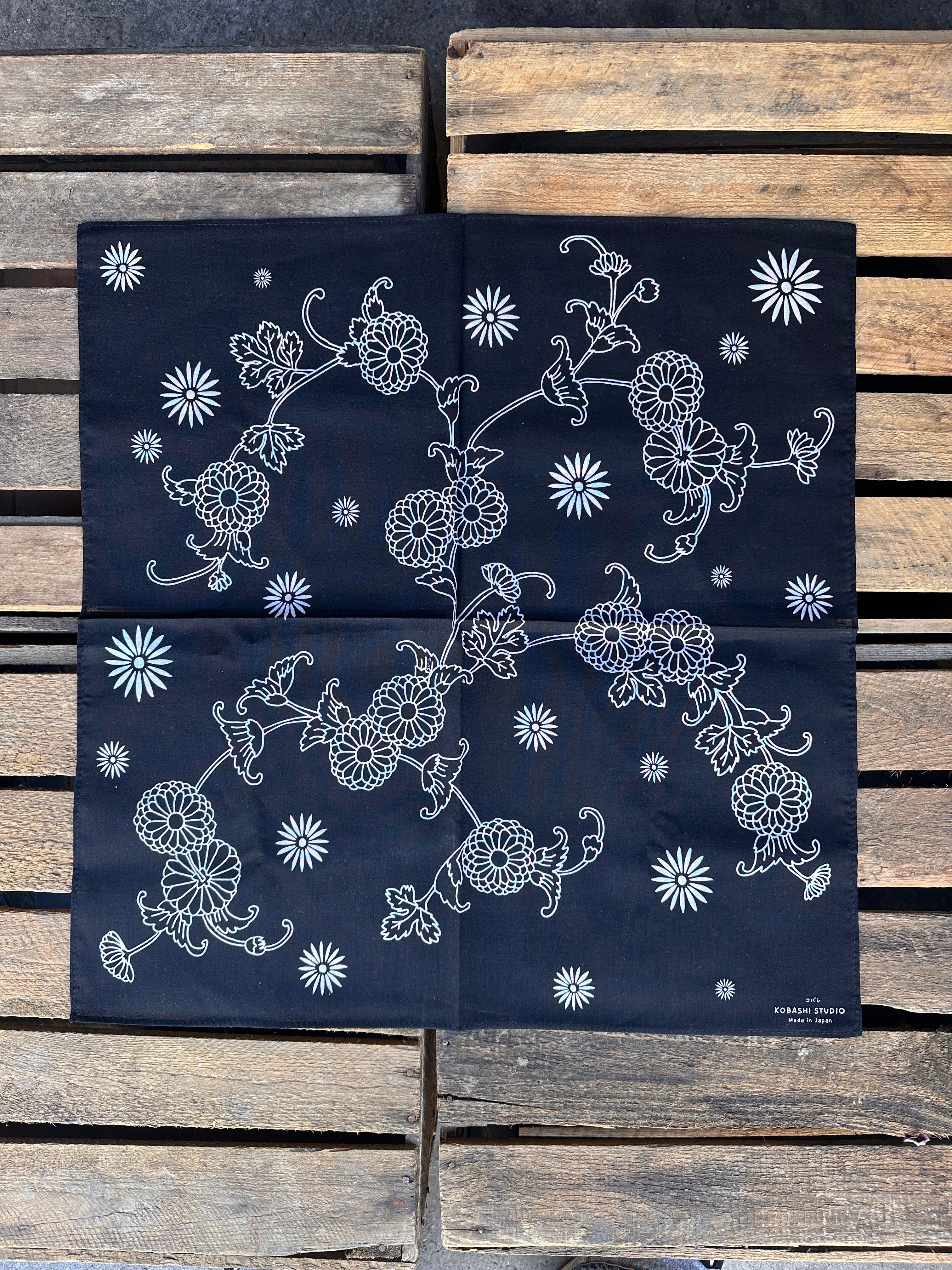 Kobashi Studio | Japanese Chrysanthemum Bandana Black “Shikkoku” | BN53BK