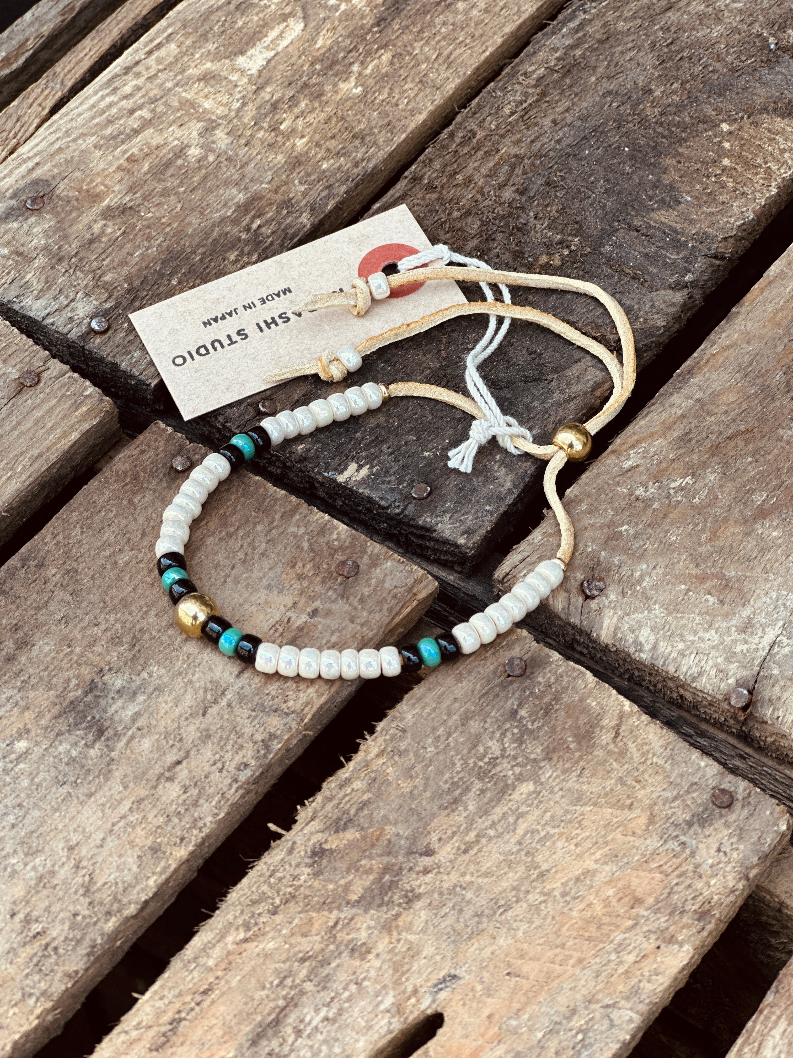 Kobashi Studio | Japanese Beads Bracelet 5mm Off-White/Black/Turquoise-Green | BRL5005