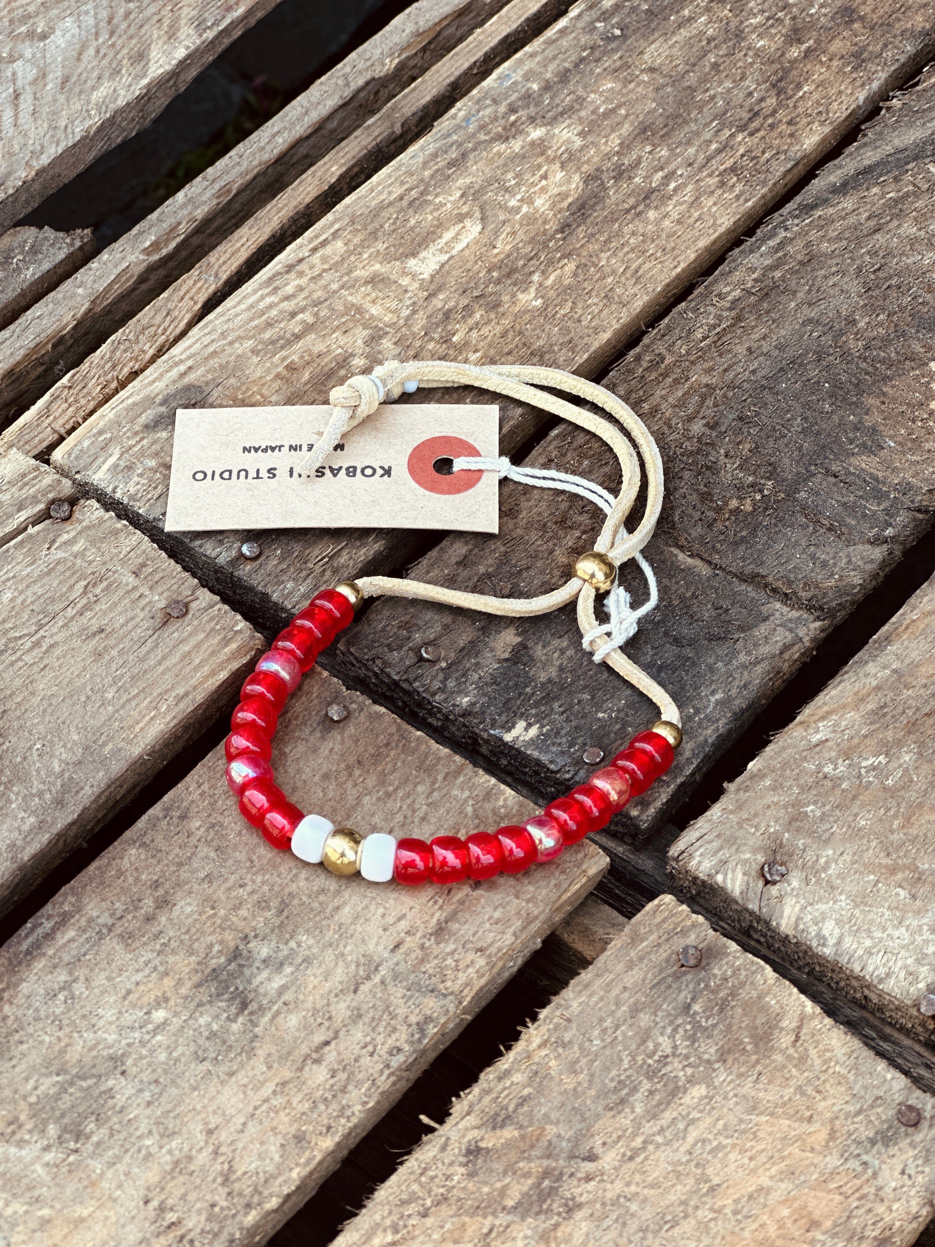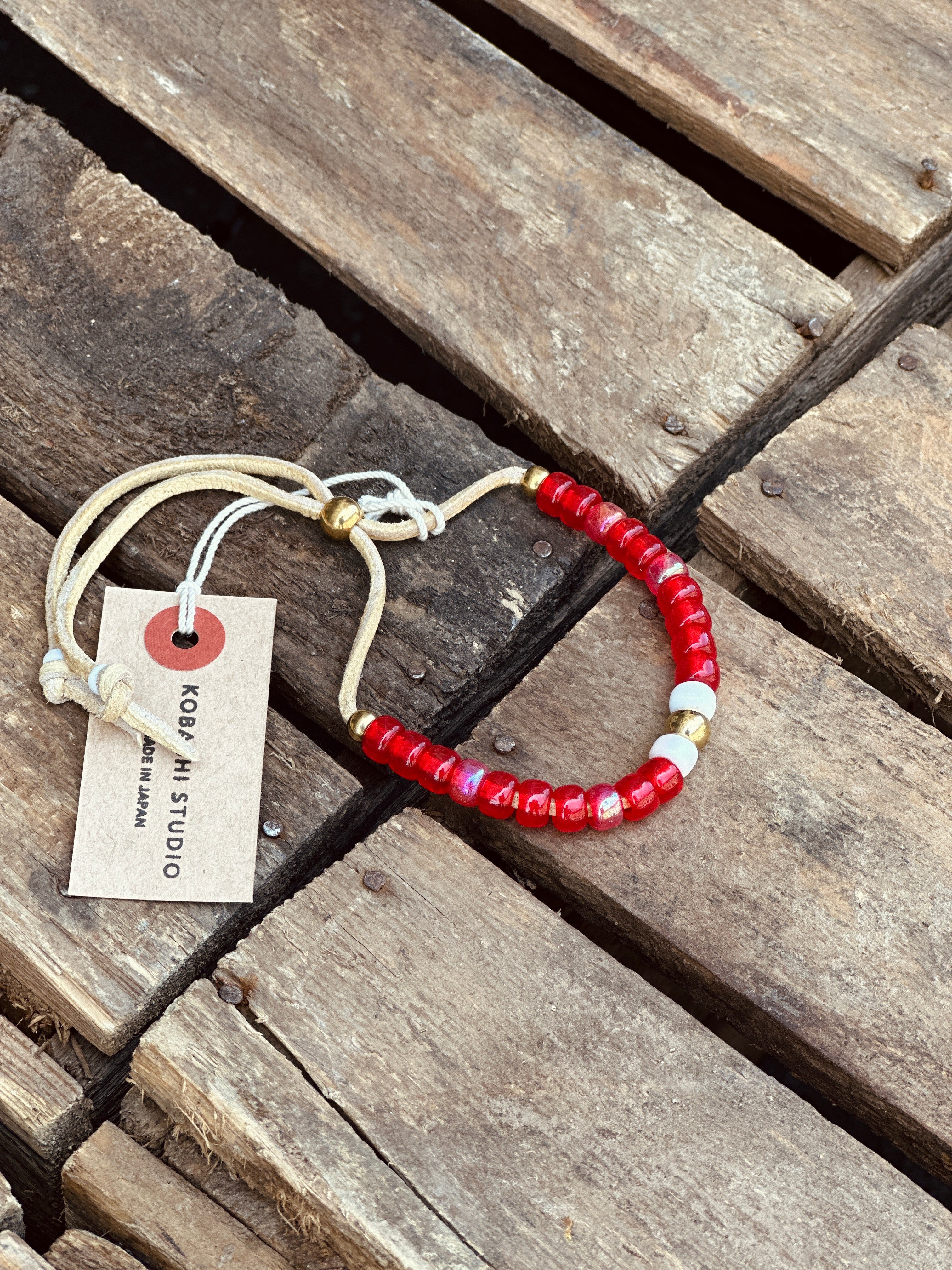 Kobashi Studio | Japanese Beads Bracelet 7mm Red/Off-White | BRL7004
