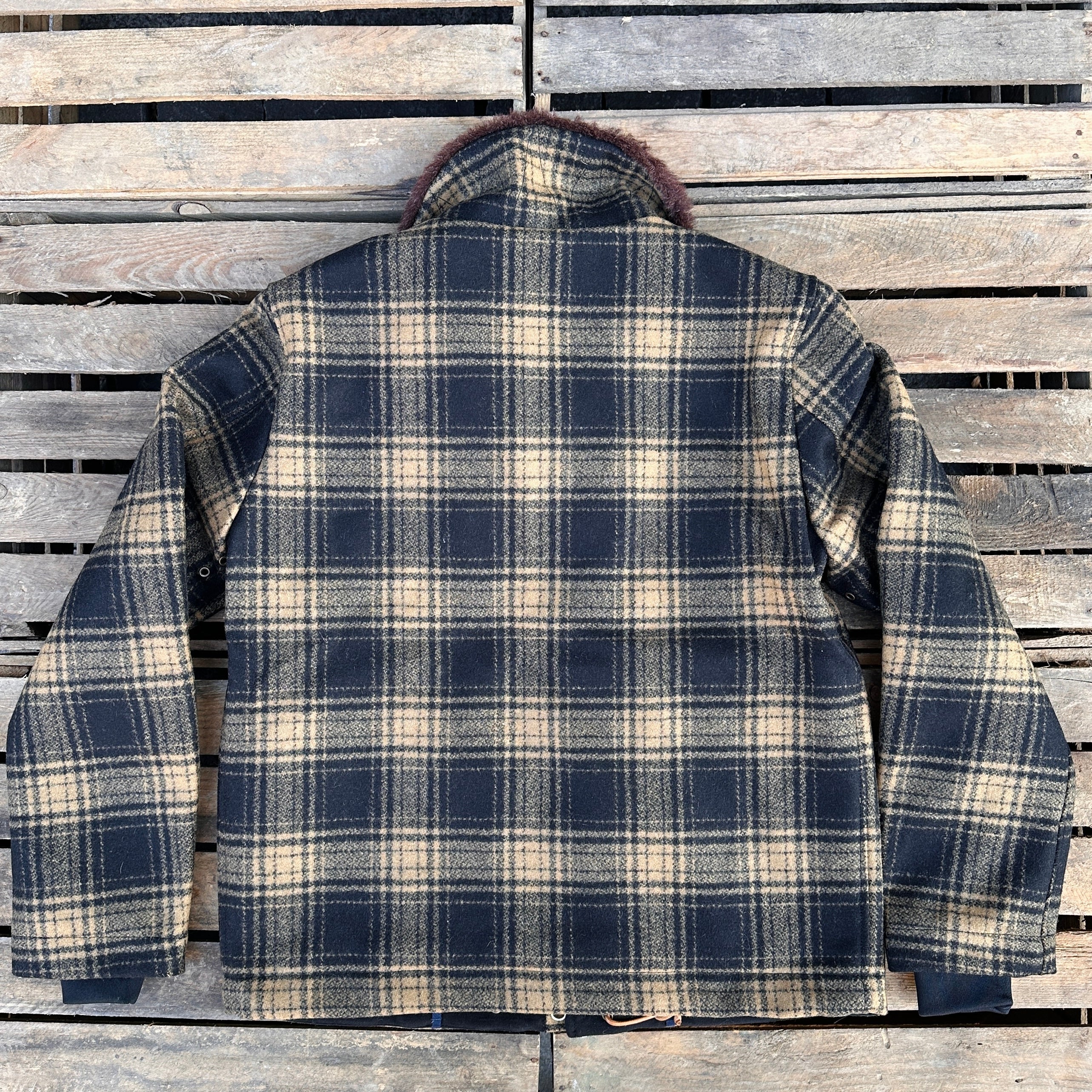 Made of Panno Stia in a checked pattern in various colors, this is a very warm padded jacket with a quilted cotton lining, padded with 100% virgin wool wadding from sheep raised in Italy, inside two large labels in Italian/English explain the origin of the external fabric and the technical characteristics of the padding.