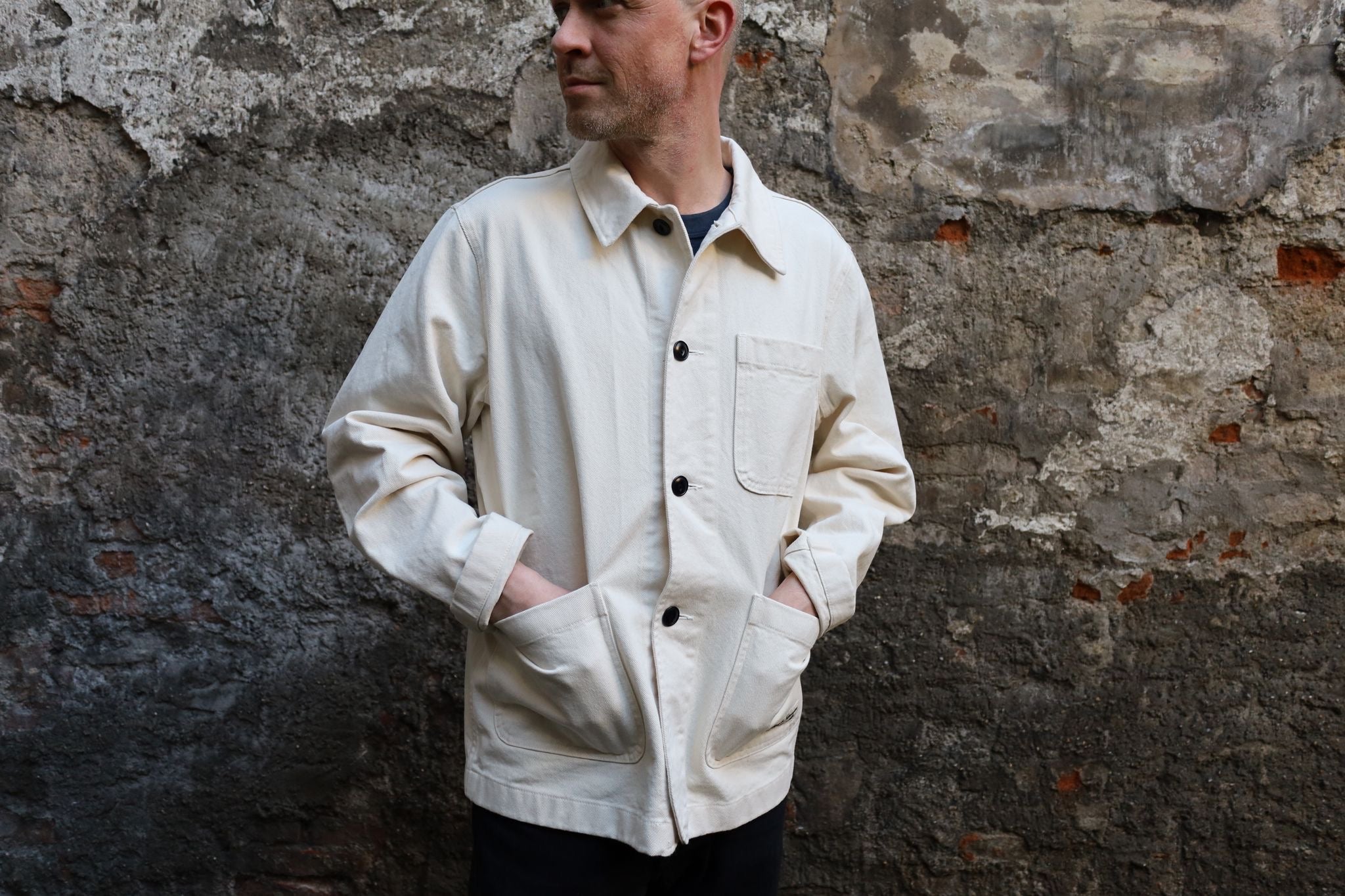 "Taking cues from our timeless Jacket, this sturdy yet lightweight garment is made from 100% organic cotton with a broken-twill pattern that sets it apart. Featuring a distinctly workwear look, this jacket is comfortable, versatile and practical—a perfect combination for springtime and summer’s cooler days. Like many Merz b. Schwanen garments, this jacket is inspired by the workwear of old, with a focus on excellent style, superb quality and lasting comfort.
