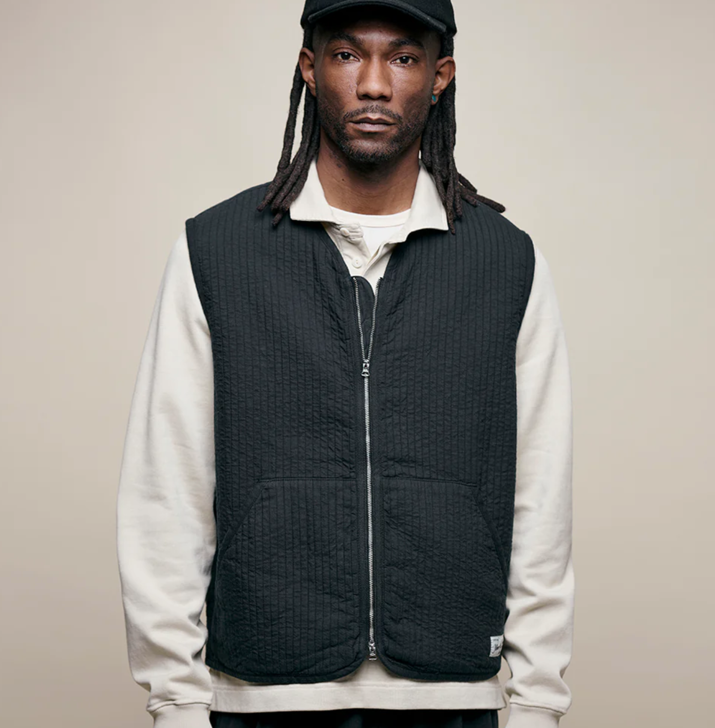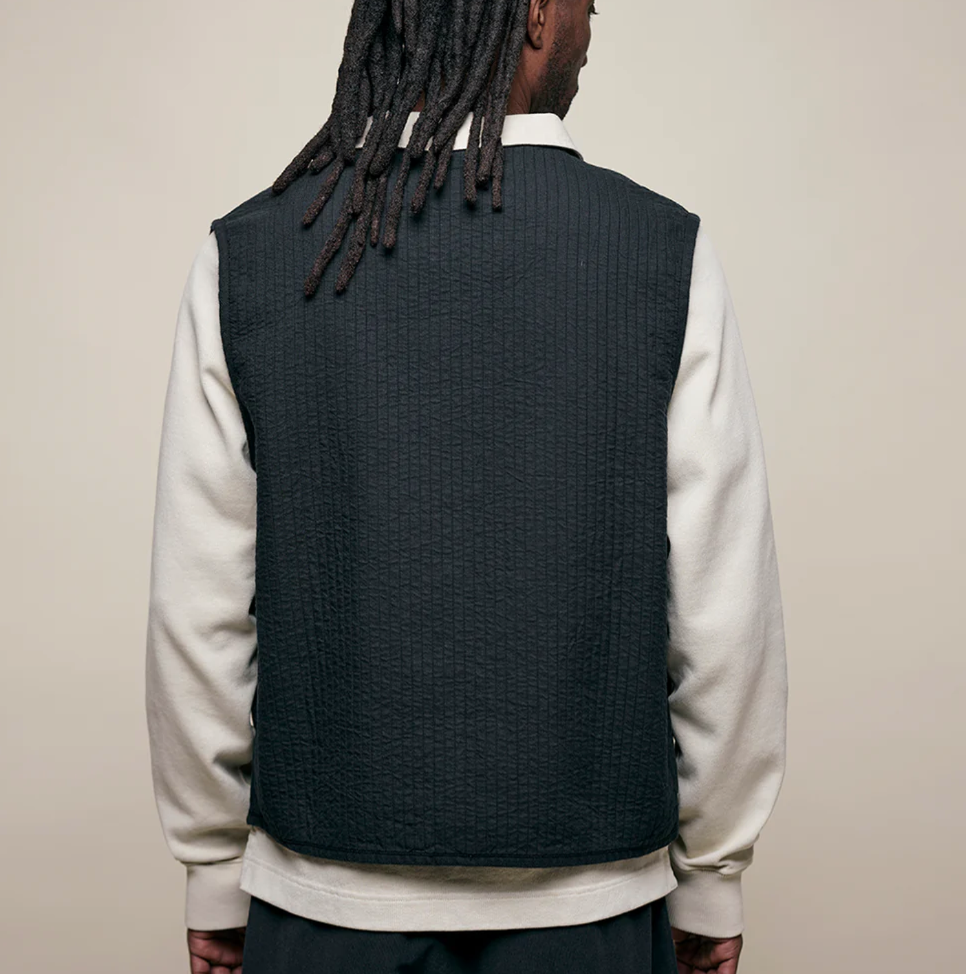 Add an extra layer of warmth with our Padded Vest. Made from 100% organic cotton padded fabric, this vest is perfect as an extra layer that adds structure and versatility to any look. What sets this fabric apart is its unique two-layer weave, crafted entirely from cotton—eliminating the need for a polyester filling in the middle. This innovative approach not only enhances comfort but also underscores our commitment to sustainable design.Designed for versatility, this vest features a zip closure and two front kangaroo pockets for practicality and a modern touch. The padded construction adds warmth when needed while maintaining breathability and comfort. This vest combines functionality with sustainable craftsmanship and is ideal for layering, making it a go-to piece for transitional weather and beyond.