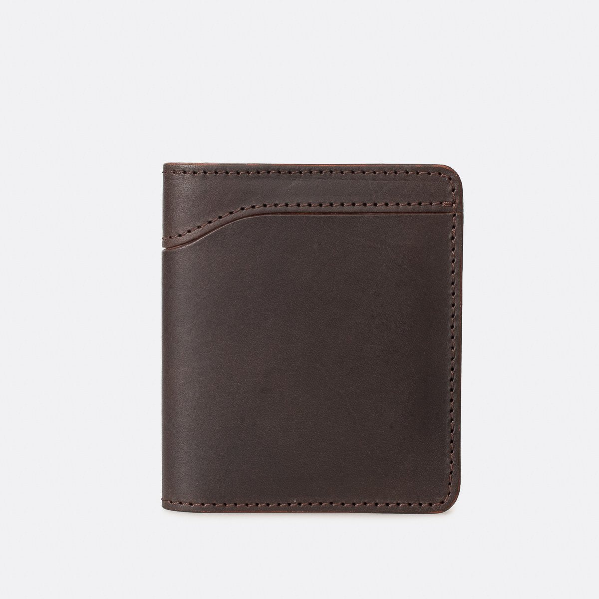 Outer bi-fold leather wallet with curved cut-out external bill slot, handmade by the good people from Obbi Good Label in Singapore. Constructed from full-grain Japanese Tochigi vegetable-tanned cowhide leather. A unique design with hand-carved card slots, external bill compartment, and hand-burnished edging.