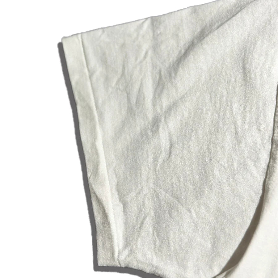 We've significantly updated our 100% American cotton fabric, known for its dry texture, which we've been using since the launch of Sugar&Co. Of course, we're using 100% American cotton open-end yarn, and it's been knitted slowly and tightly on an older high-gauge knitting machine, which is slower than previous models. While retaining the same dry, rough texture, the fabric has a heavier feel that will age beautifully over time. .The neckline features the familiar power neck (binder neck + octopus binder). The silhouette is a new basic silhouette from Sugar&Co., with room in the shoulders, yet not too loose, as is typical of Sugar&Co. Comfort, fabric feel, silhouette, and durability. This is a masterpiece that has been carefully crafted with the utmost attention to detail.